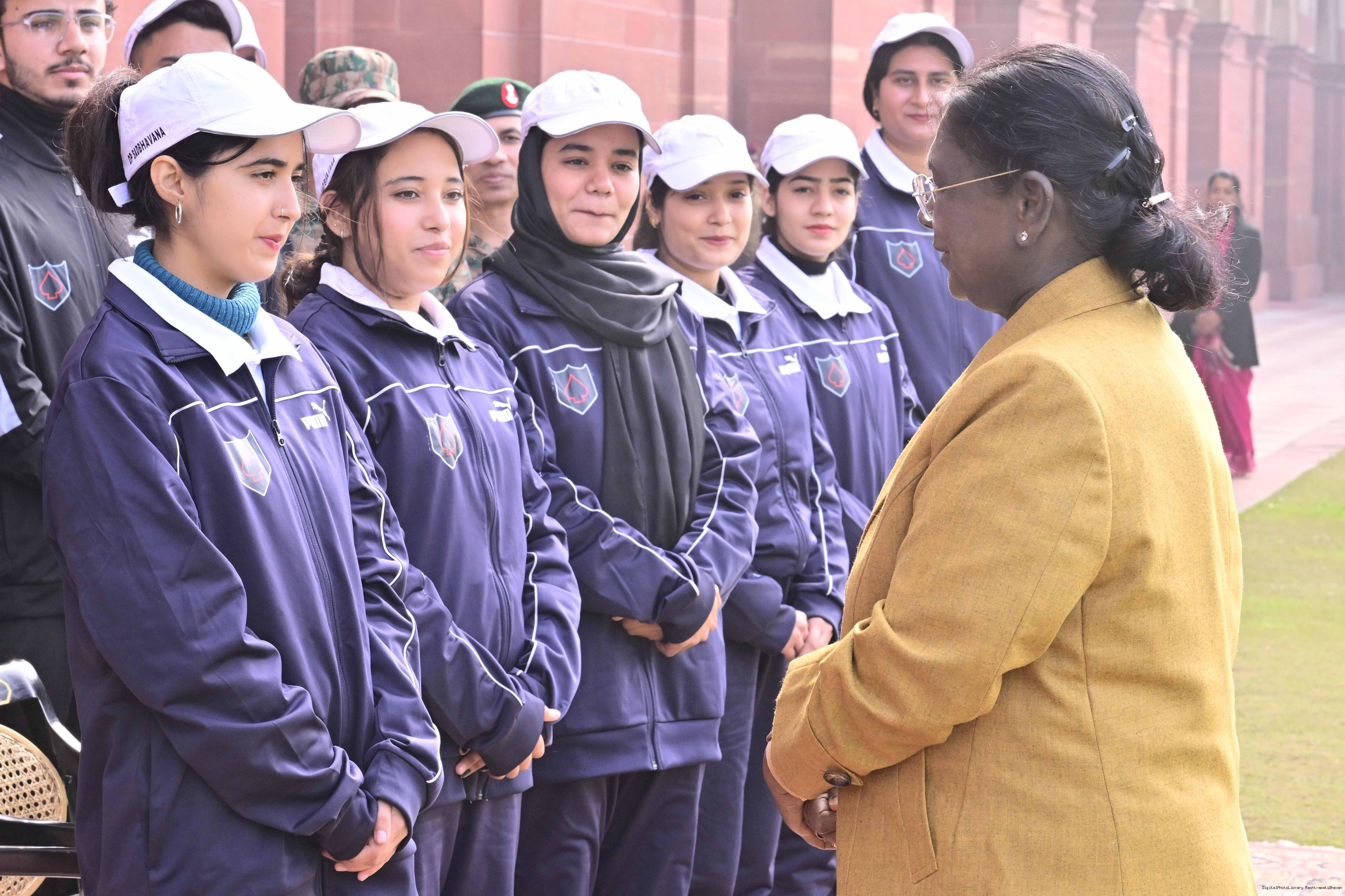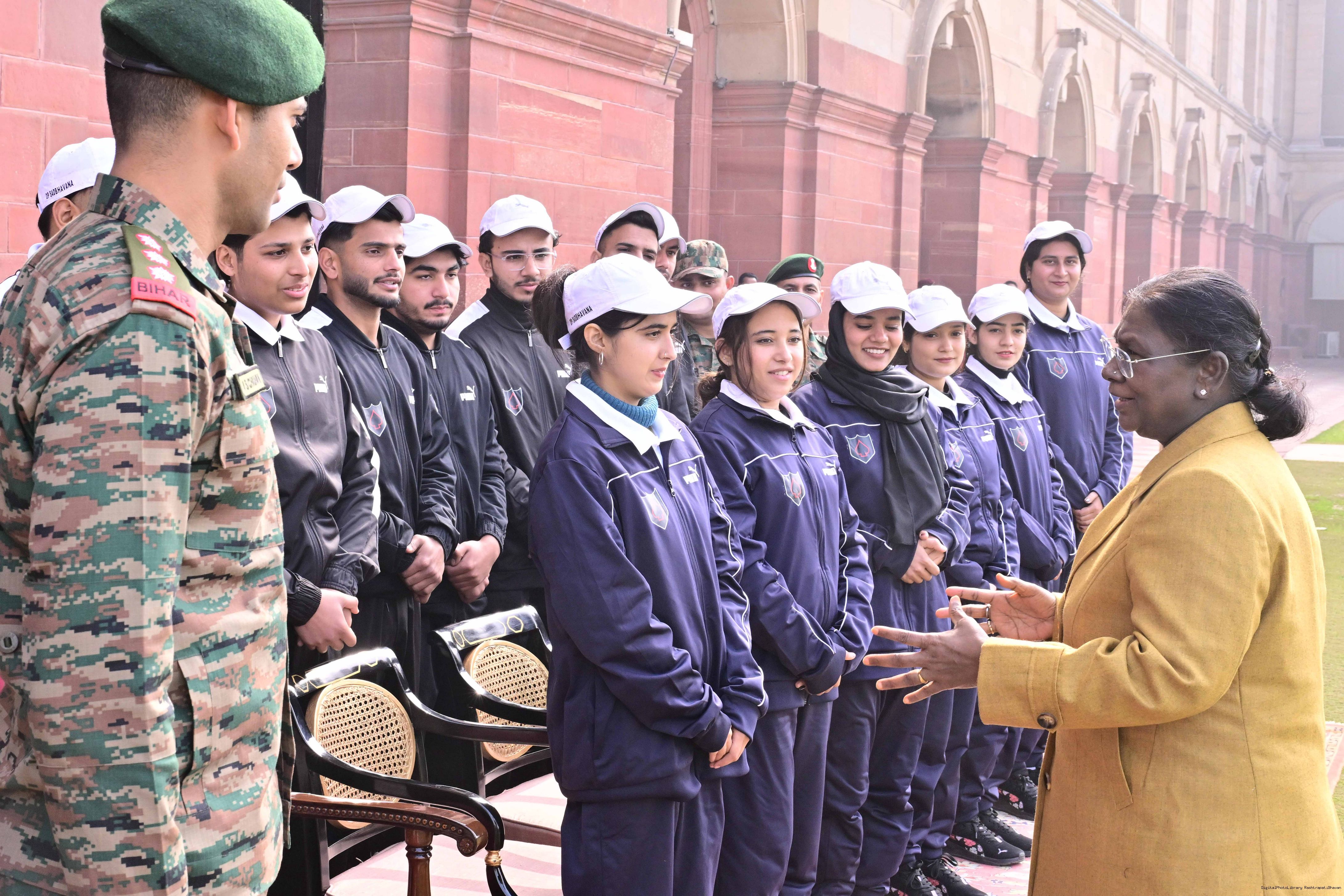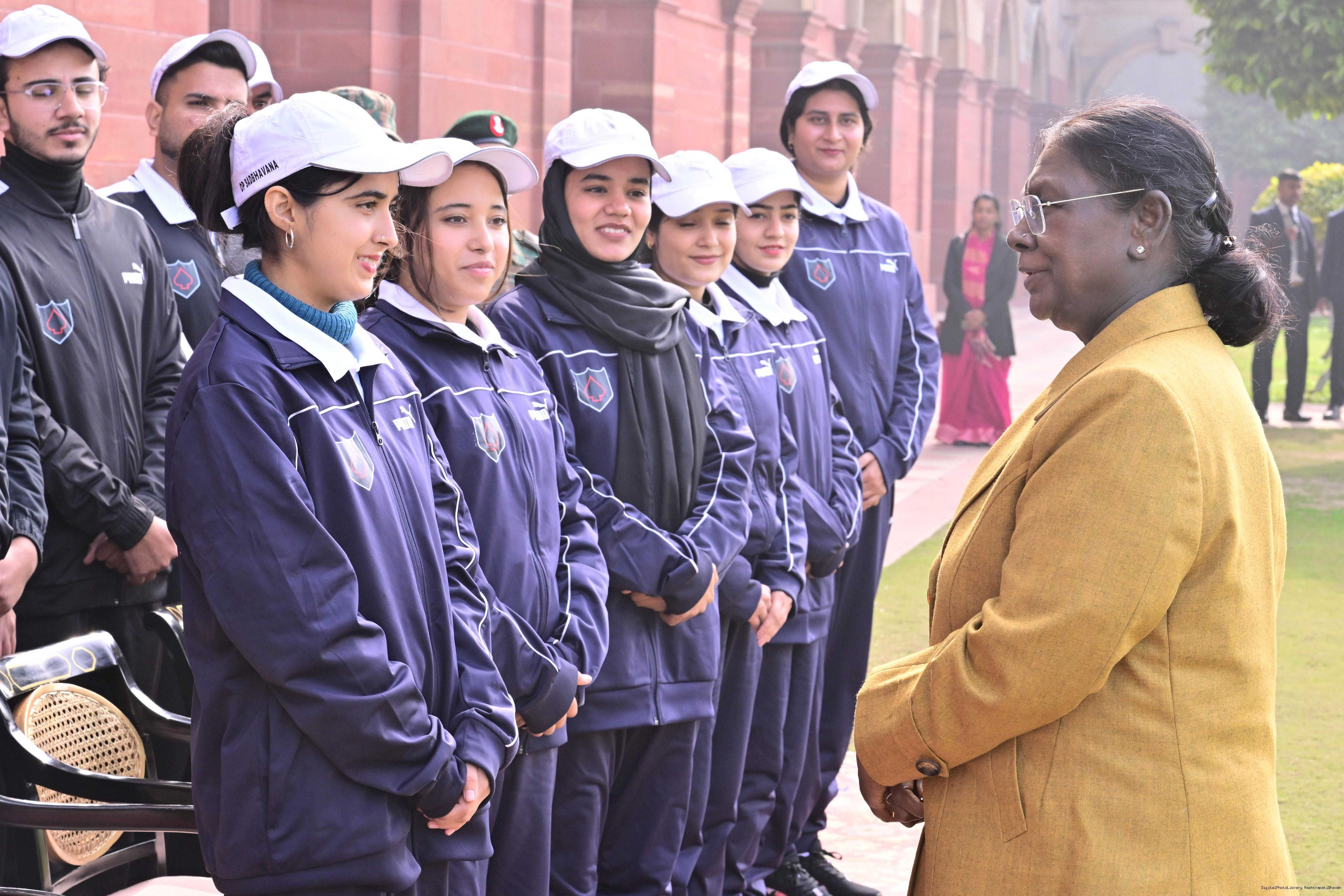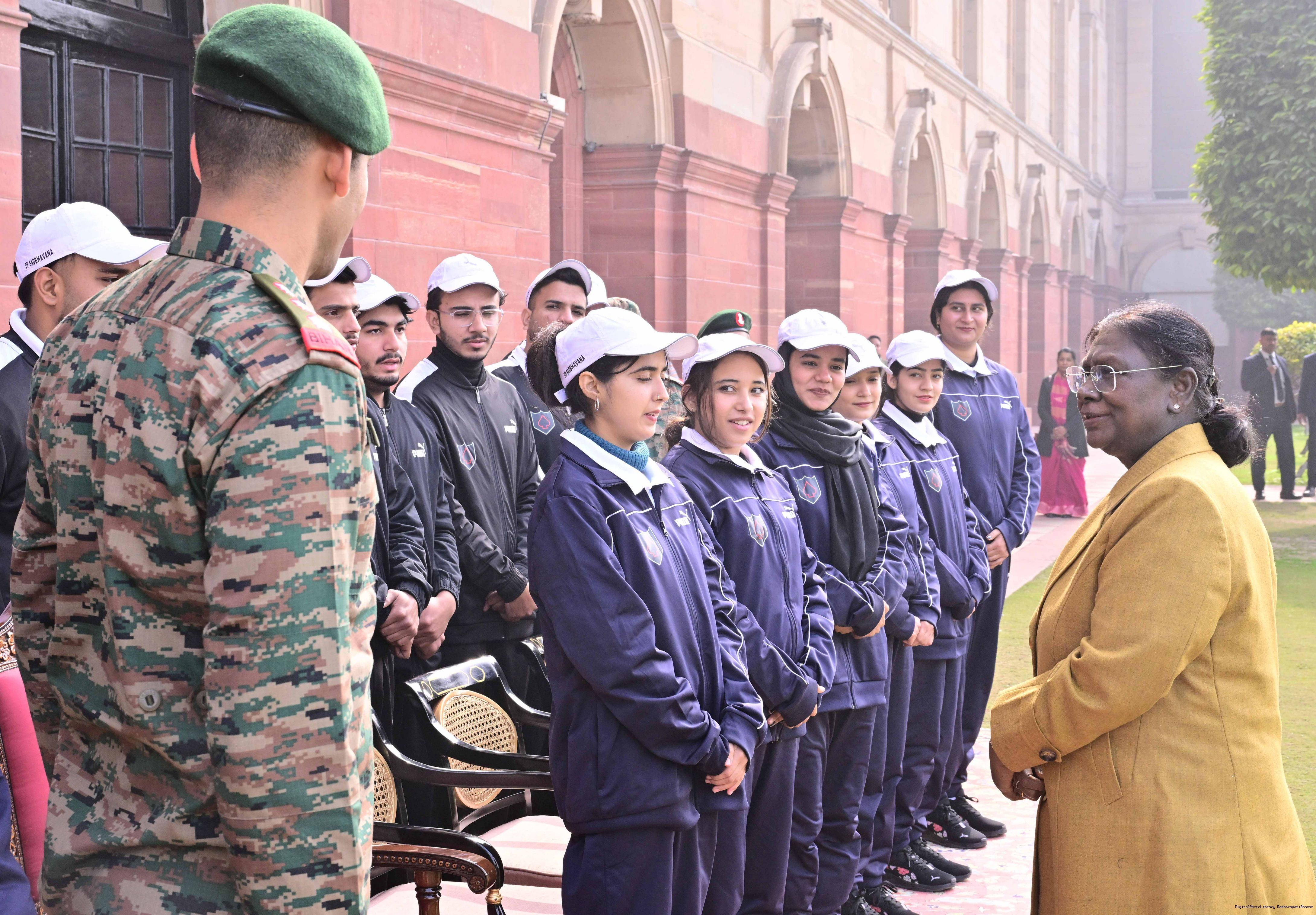 | Caption: | A group of students from Poonch, Jammu Kashmir, called on the President of India, Smt Droupadi Murmu at Rashtrapati Bhavan on January 6, 2025. They visited Rashtrapati Bhavan as part of the National Integration Tour (NIT). |