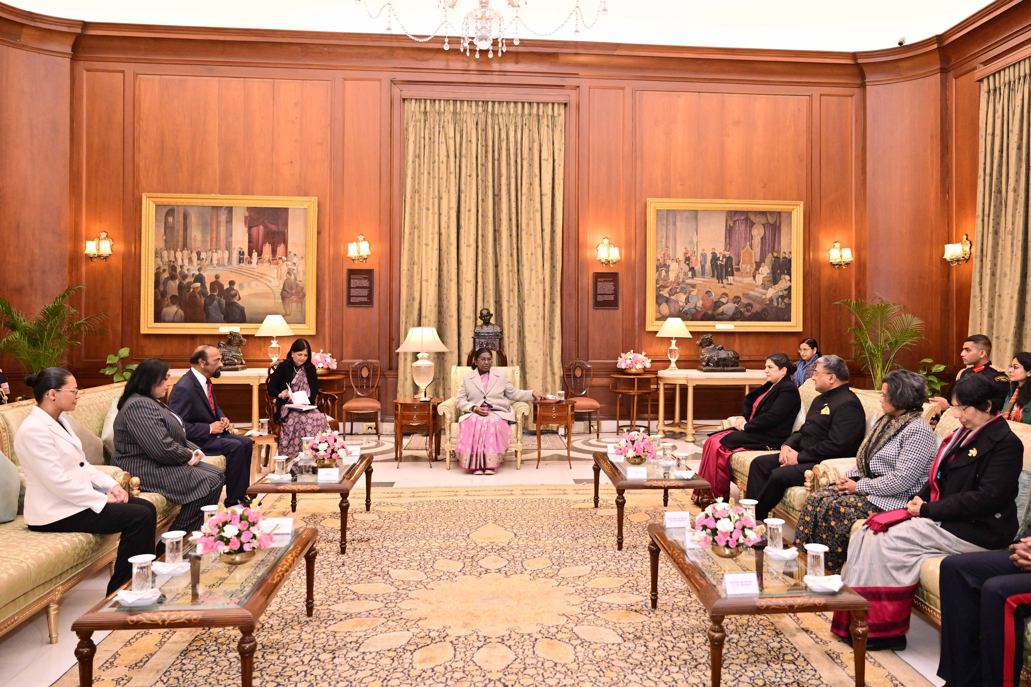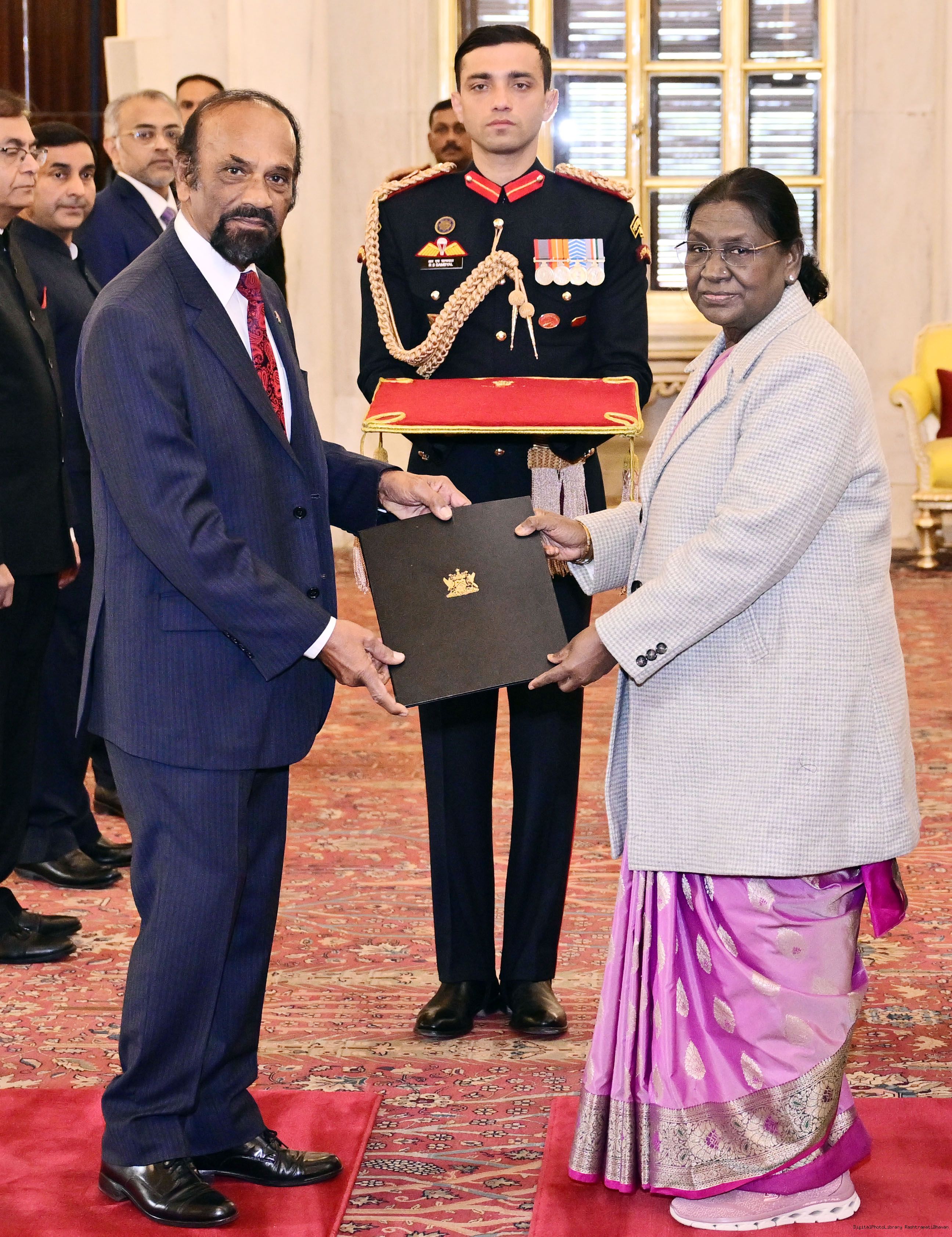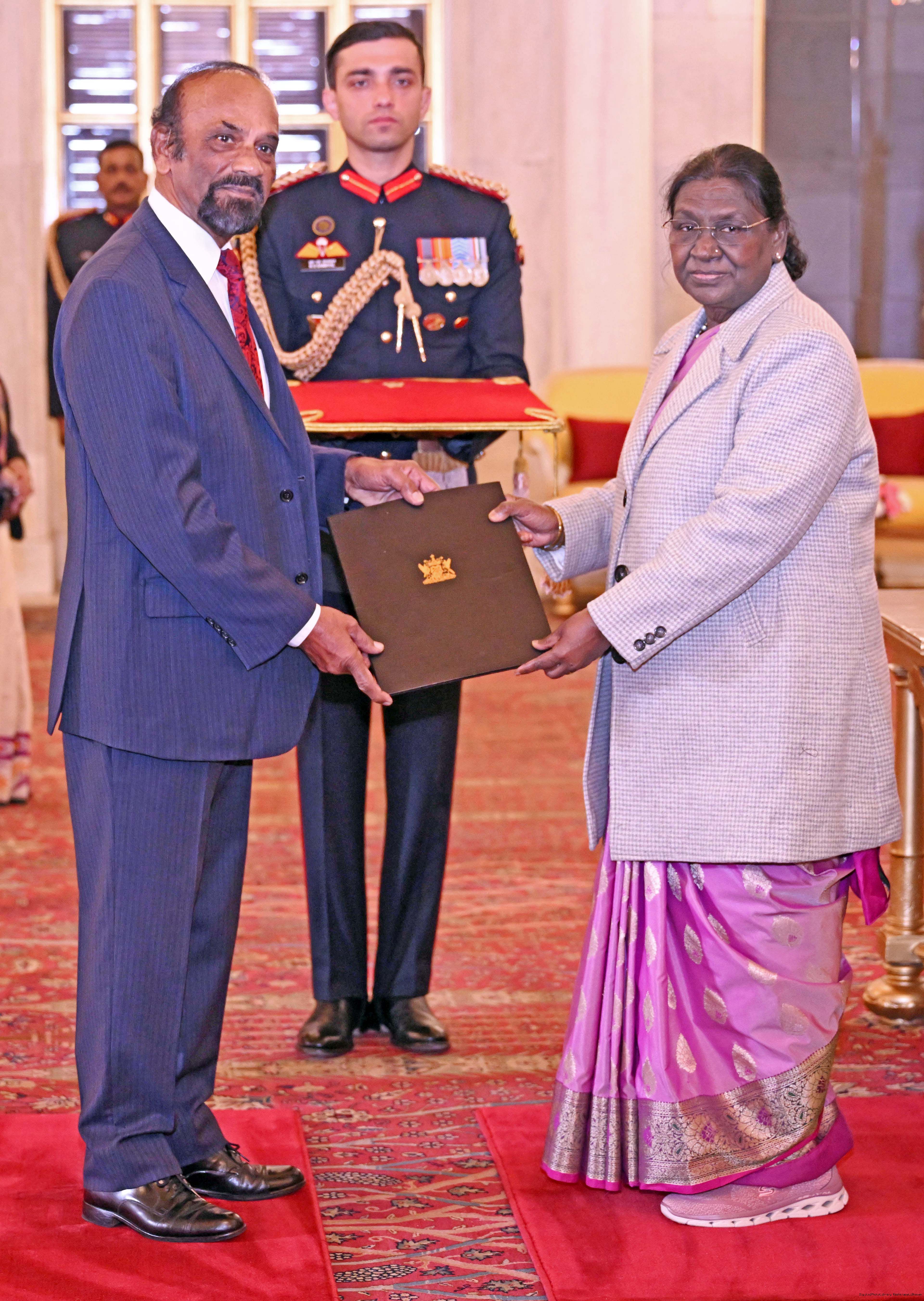 | Caption: | The High Commissionr-designate of the Republic of Trinidad Tobago, H.E. Mr. Chandradath Singh presenting his credentials to the President of India, Smt Droupadi Murmu at Ashok Hall of Rashtrapati Bhavan in New Delhi on January 14, 2026. |