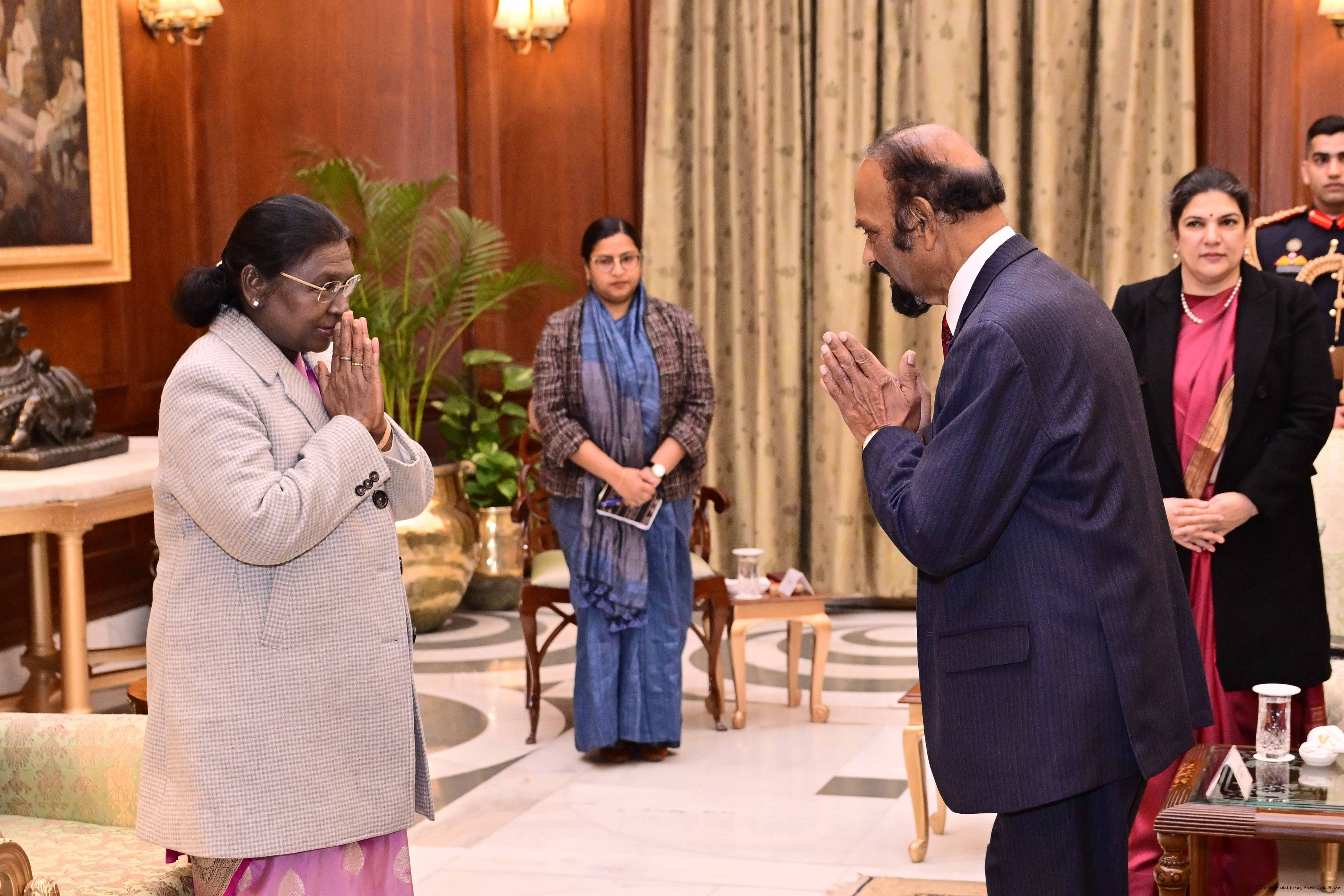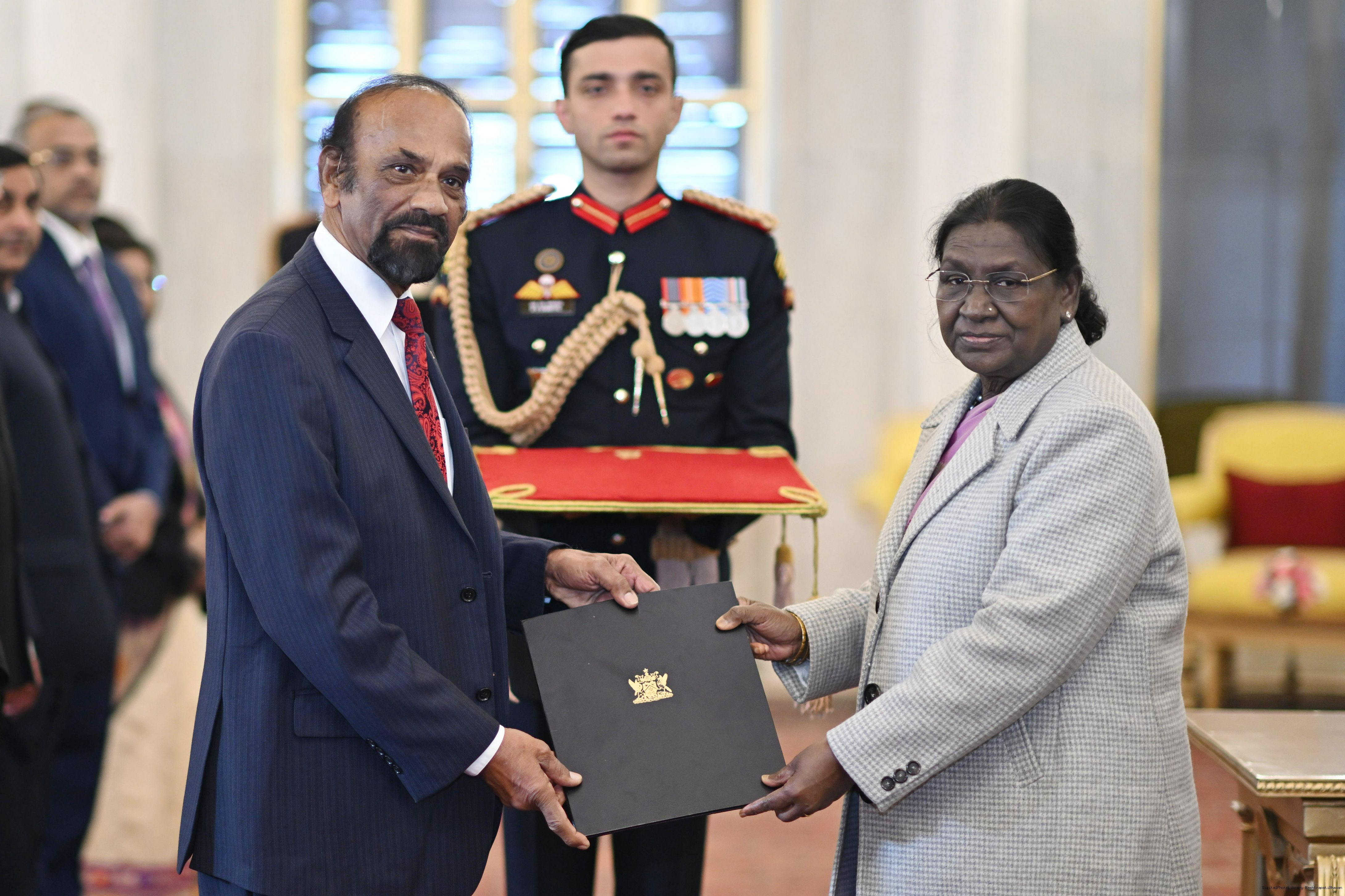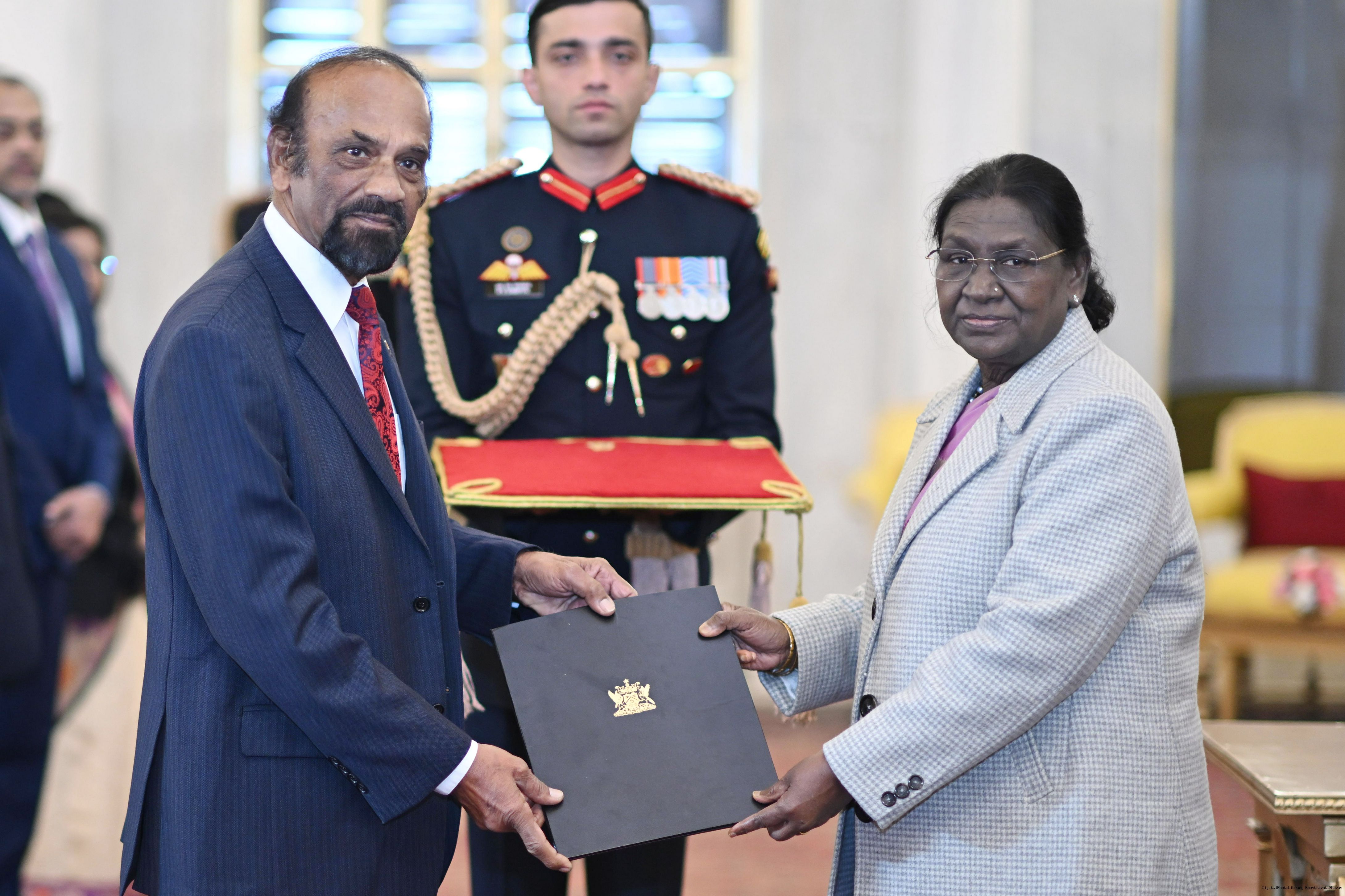 | Caption: | The High Commissionr-designate of the Republic of Trinidad Tobago, H.E. Mr. Chandradath Singh presenting his credentials to the President of India, Smt Droupadi Murmu at Ashok Hall of Rashtrapati Bhavan in New Delhi on January 14, 2026. |