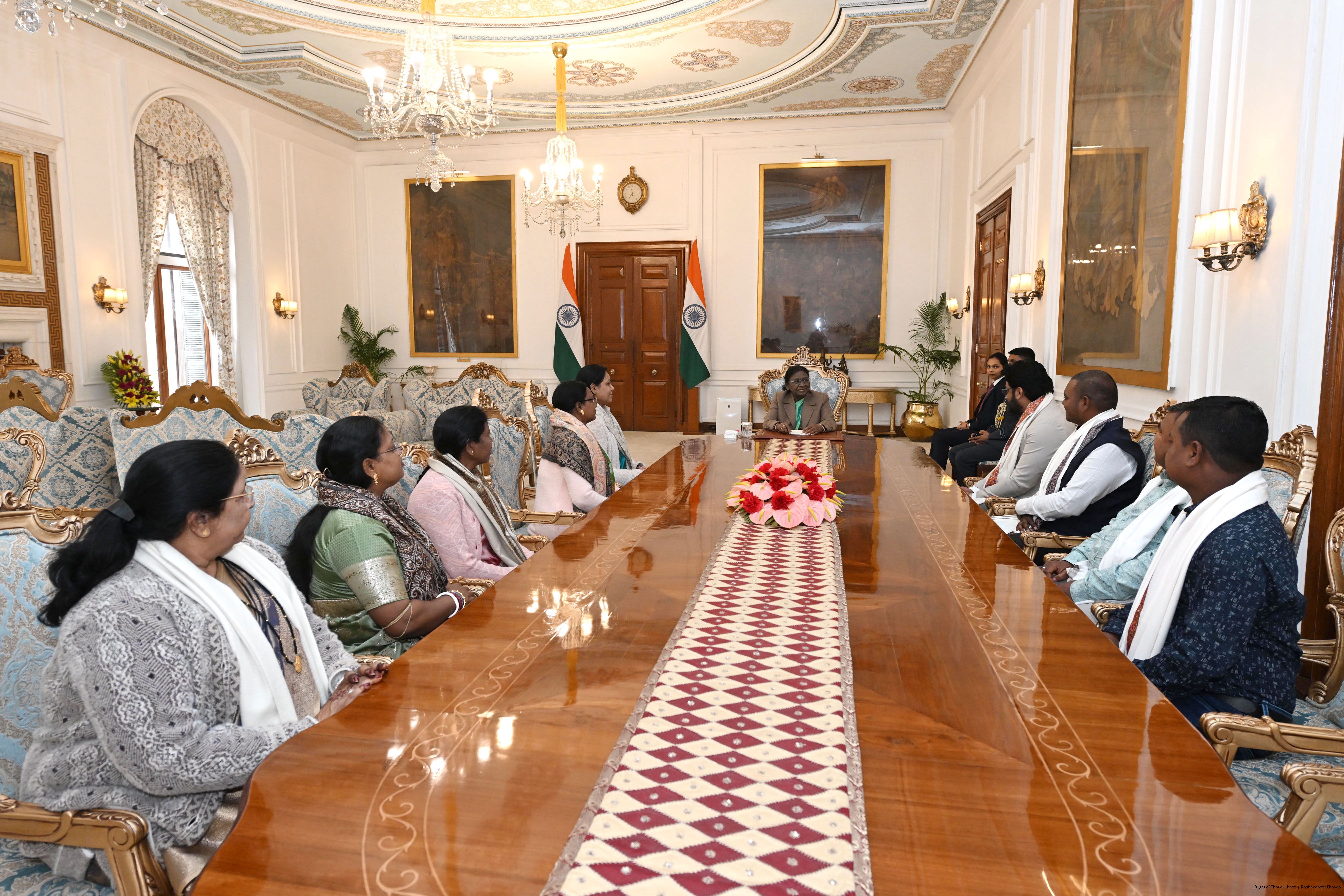 | Caption: | Shri Abhishek Pattnaik, Chairperson, Rairangpur Municipality along with others meeting with the President of India, Smt Droupadi Murmu at Rashtrapati Bhavan on January 19, 2026. |