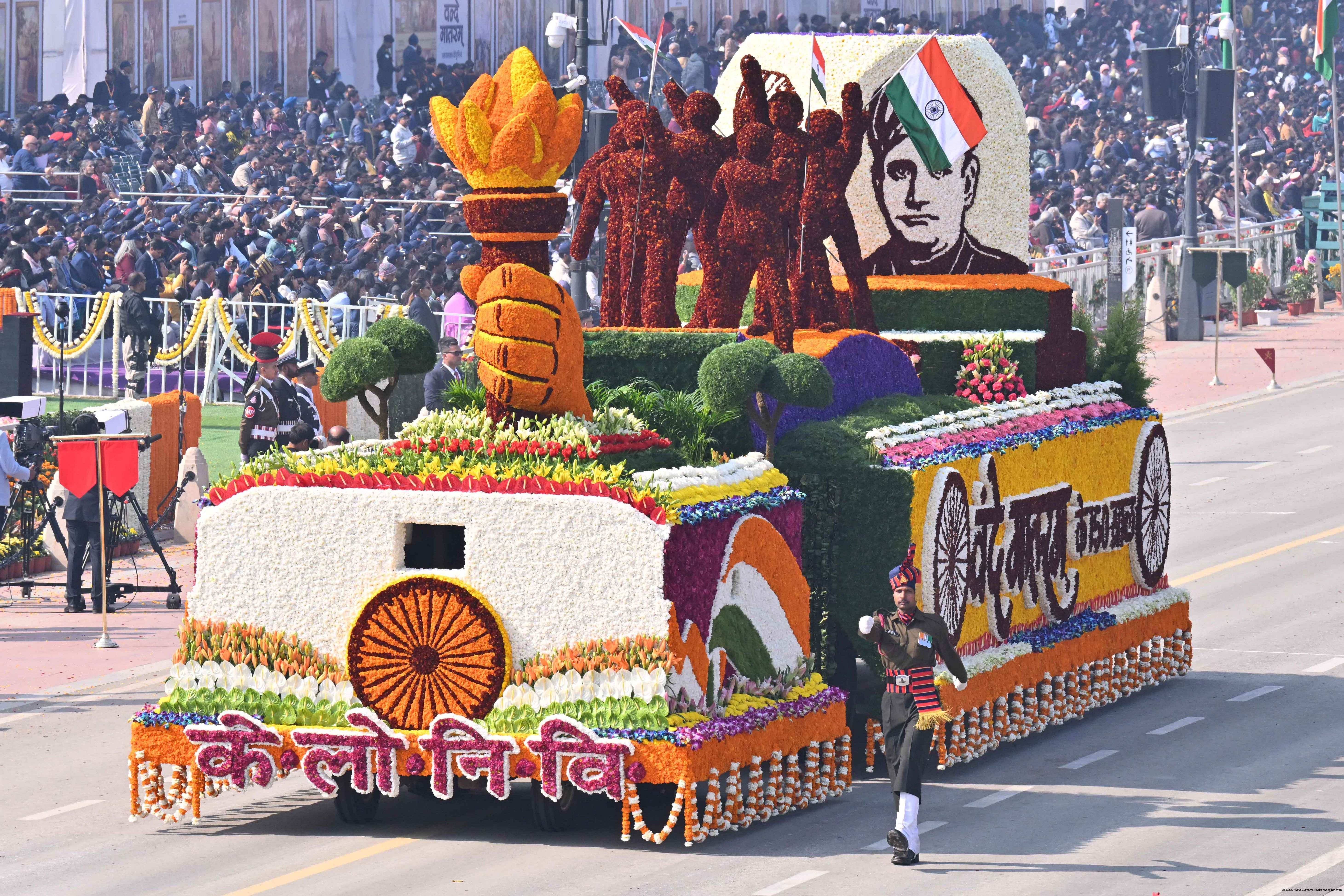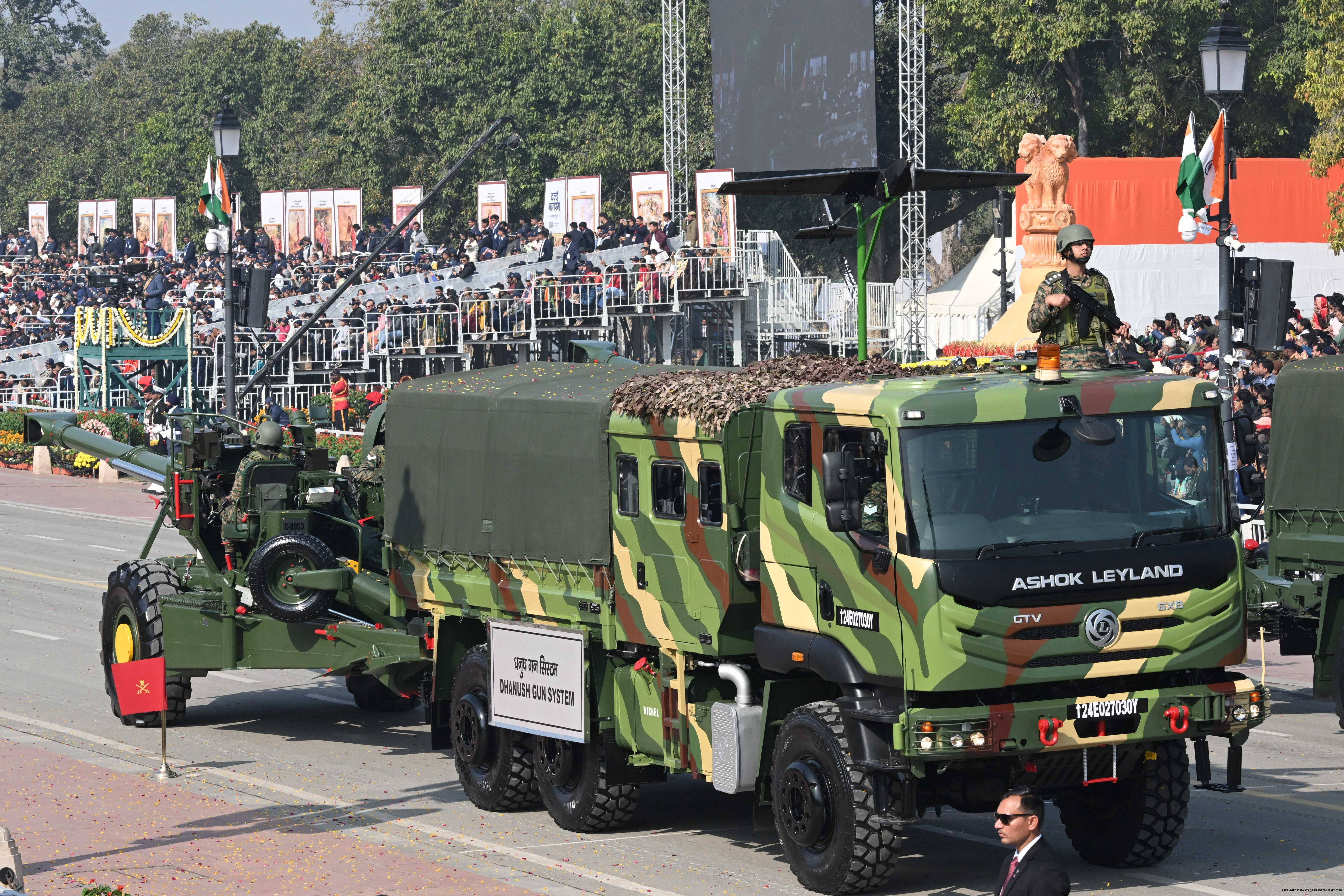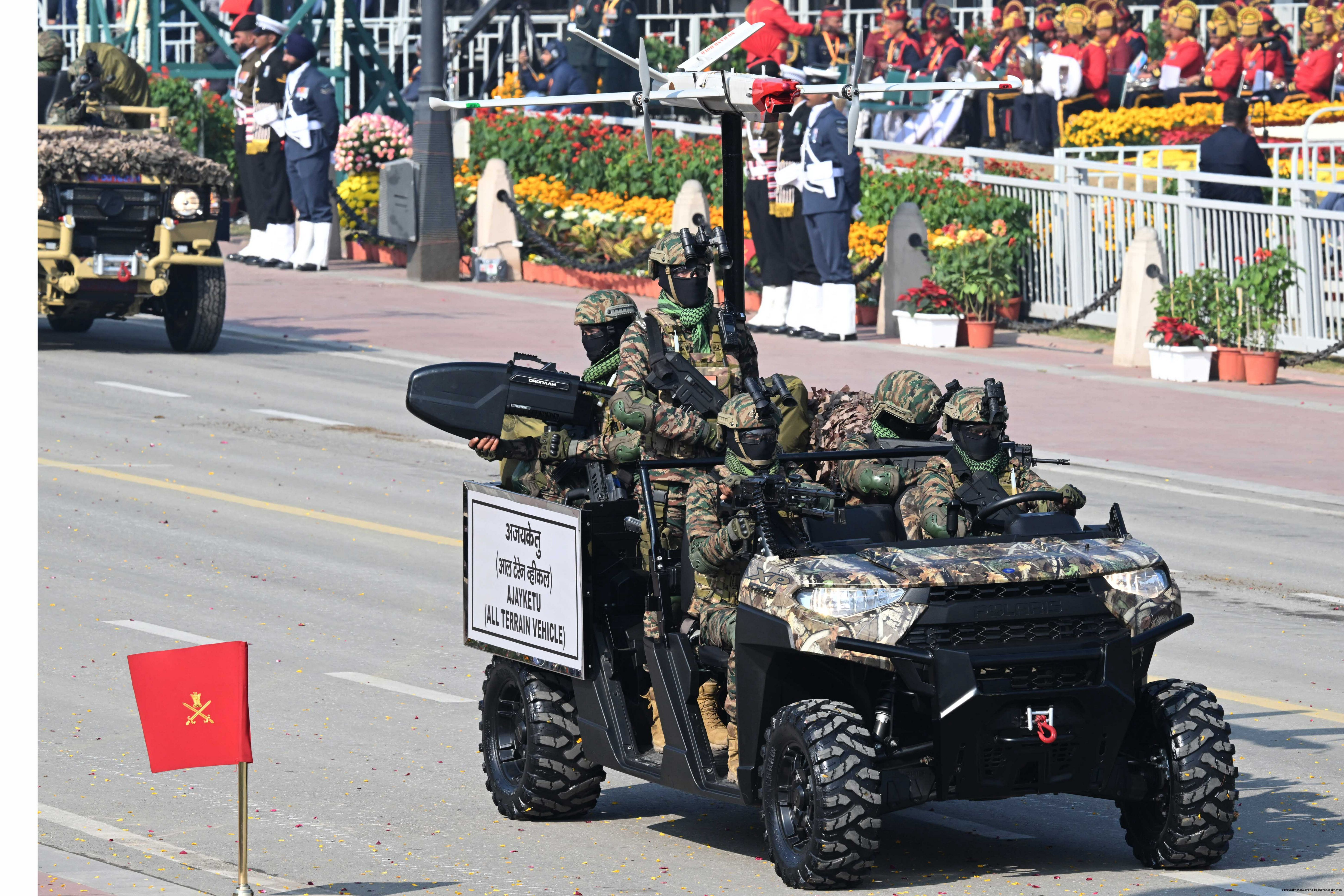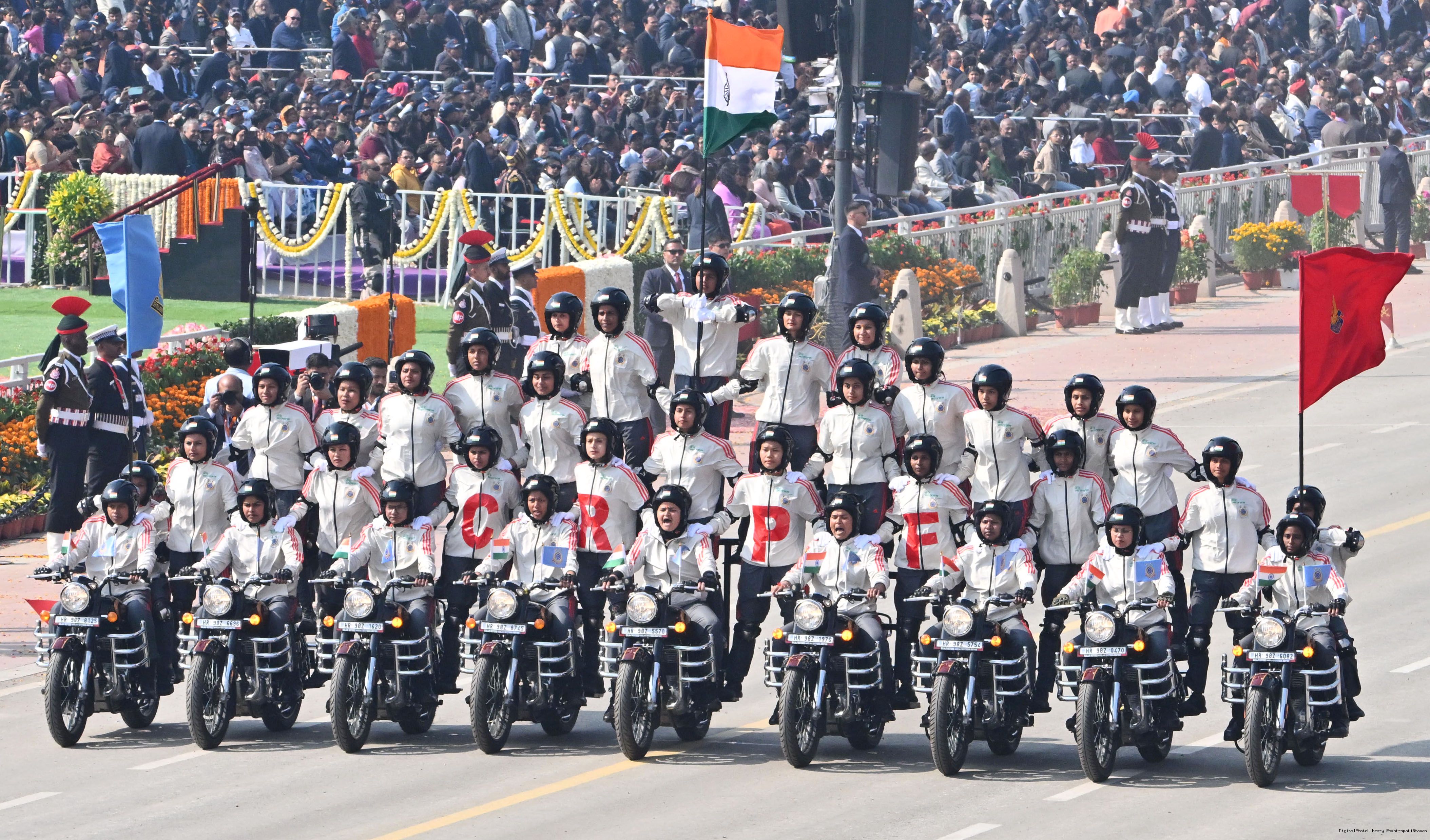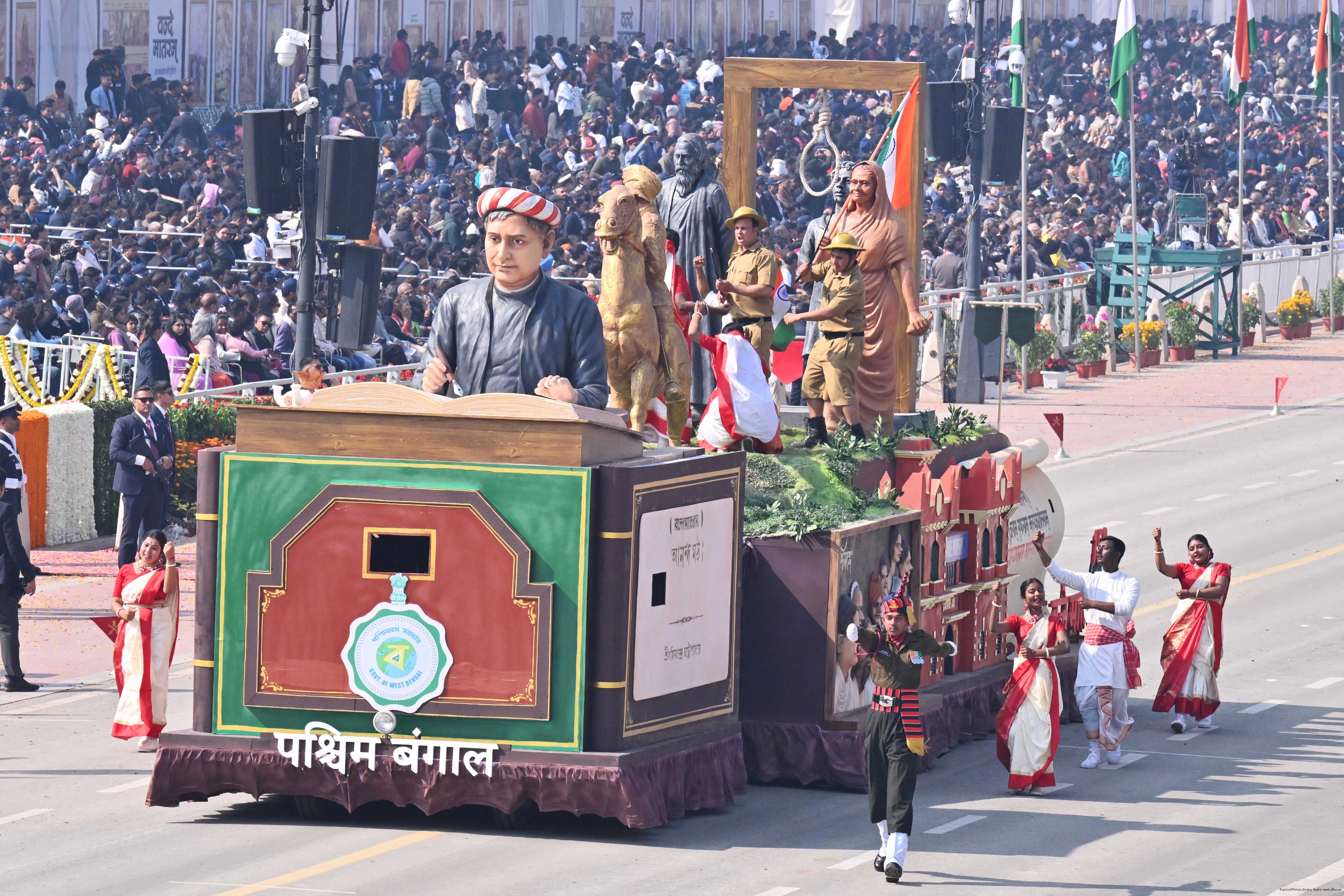 | Caption: | The President of India, Smt Droupadi Murmu, along with the Chief Guests, the President of the European Council Mr. Antonio Costa, and the President of the European Commission Ms. Ursula von der Leyen, witnessed the 77th Republic Day Parade at Kartavya Path on January 26, 2026. |