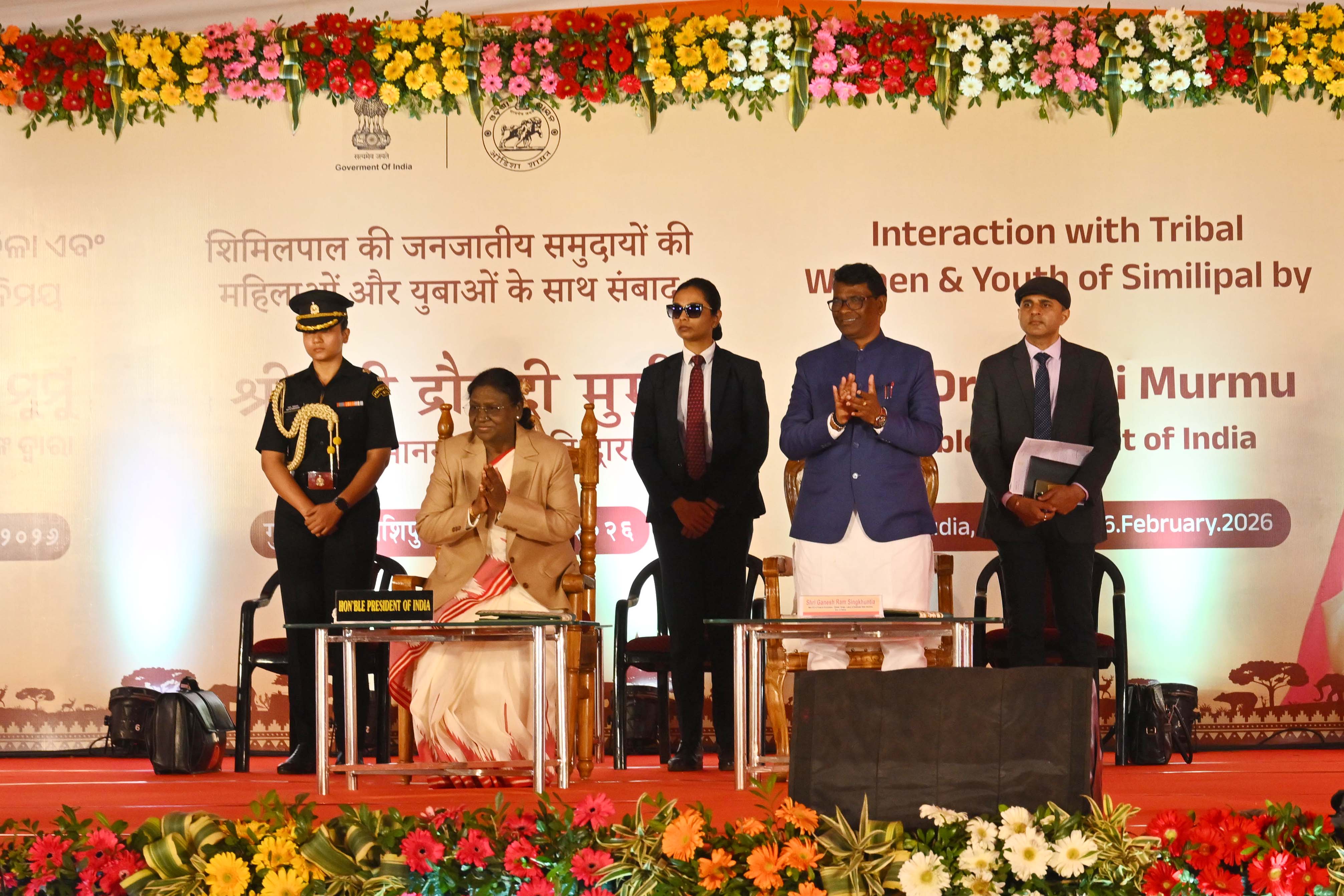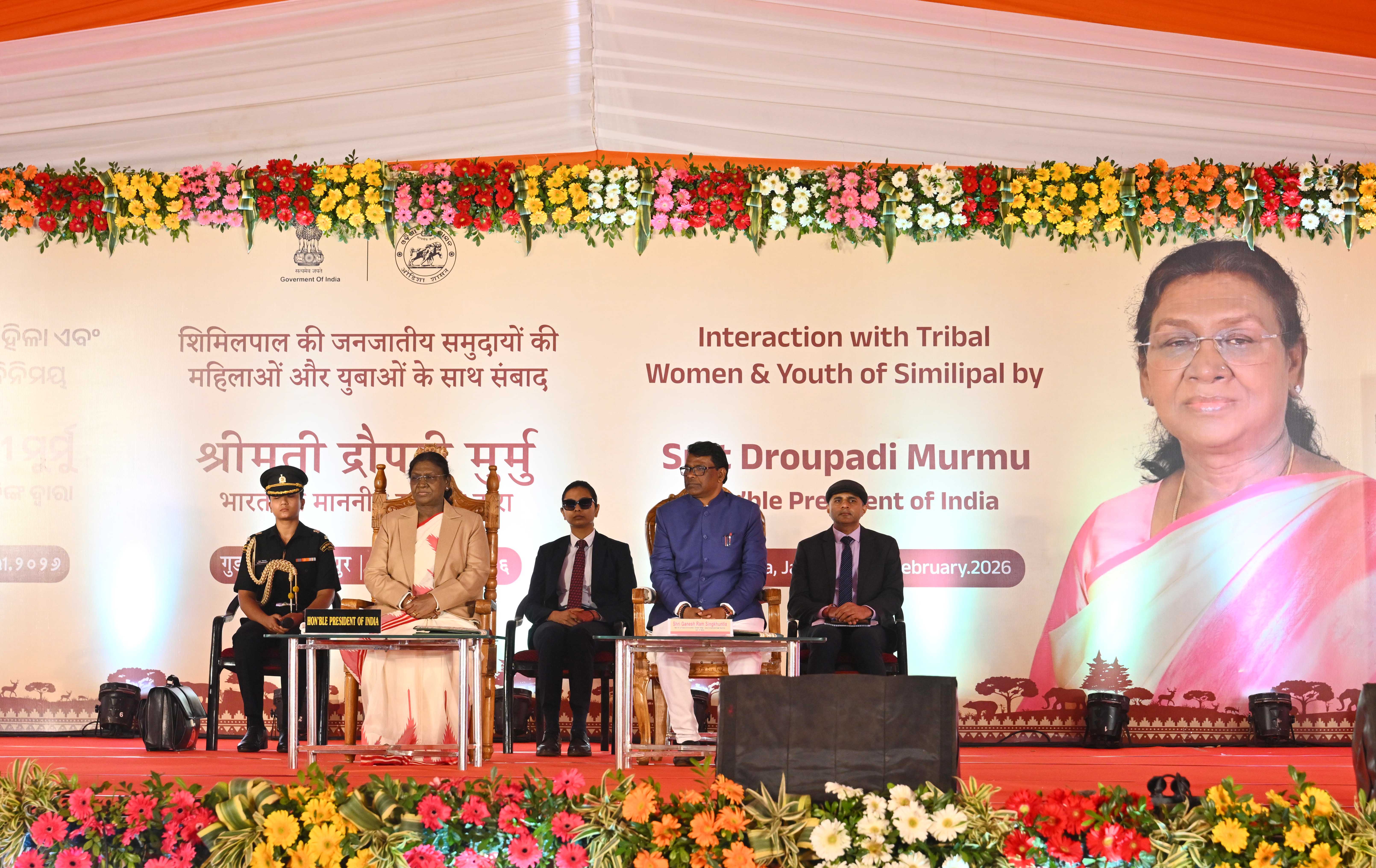 | Caption: | The President of India Smt Droupadi Murmu interacted with women and youth of tribal communities at Simlipal, Odisha on February 6, 2026. |
