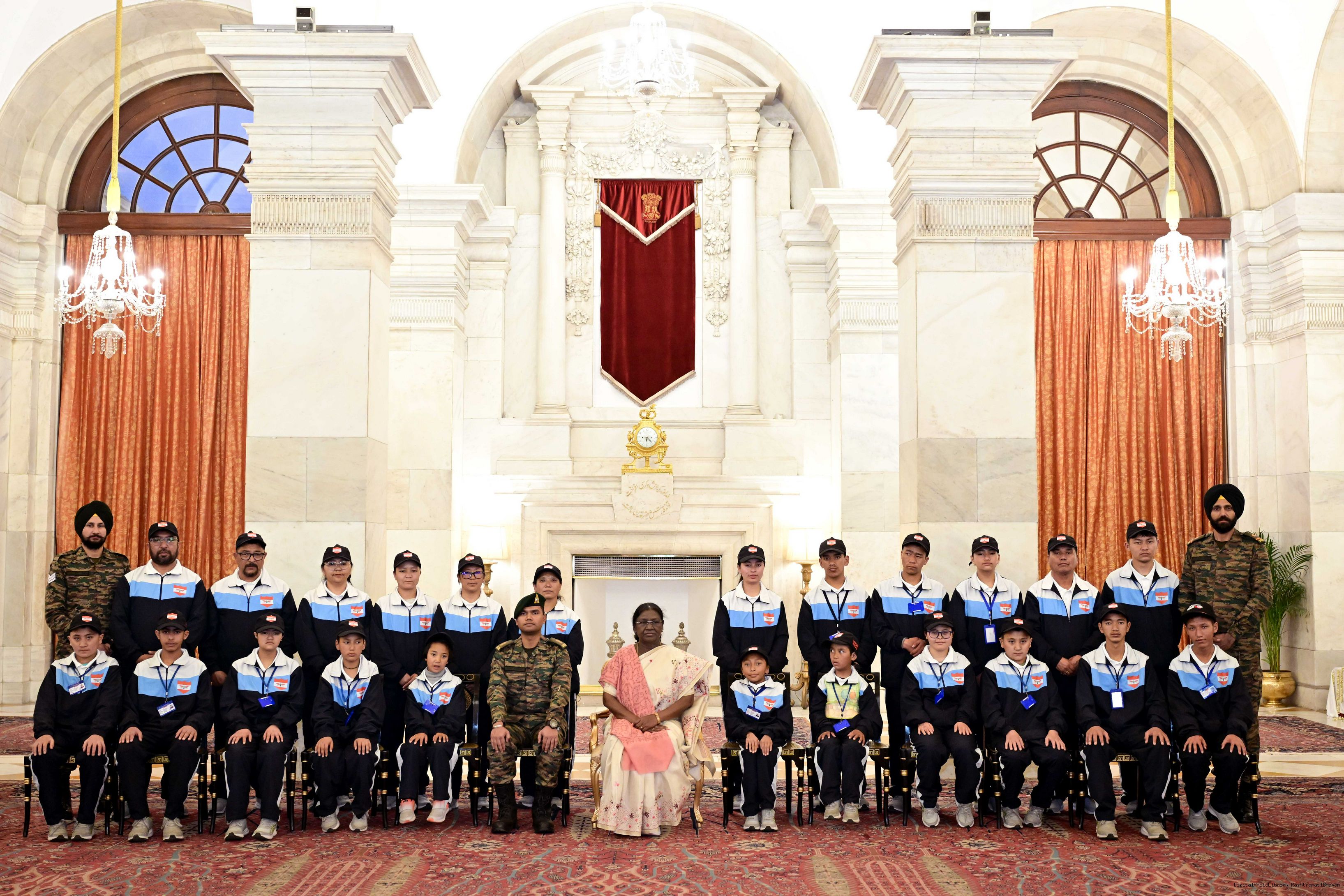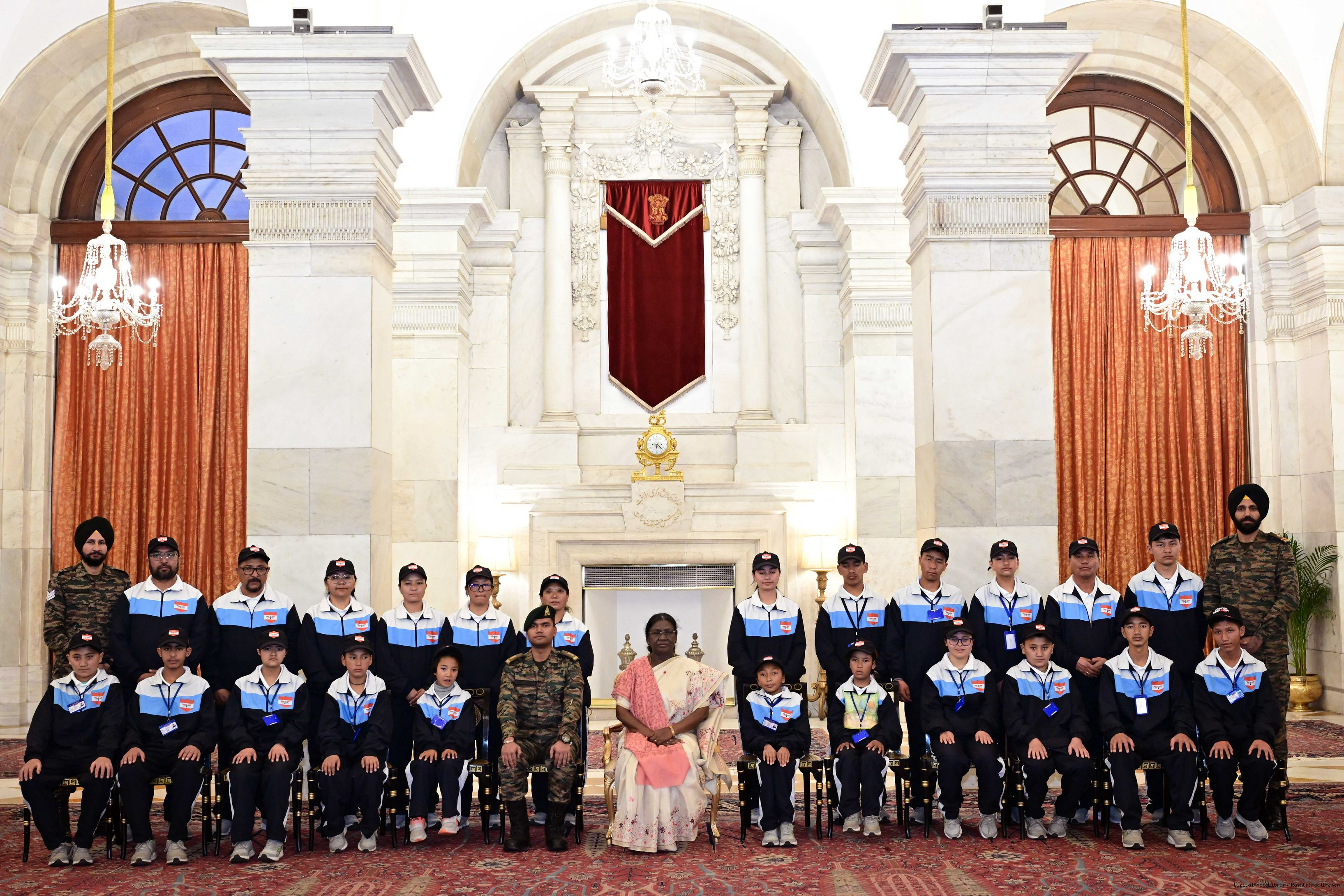 | Caption: | A group of specially-abled children from Ladakh called on President Droupadi Murmu at Rashtrapati Bhavan on February 8, 2026. The group visited Rashtrapati Bhavan as part of the National Integration Tour (NIT). |