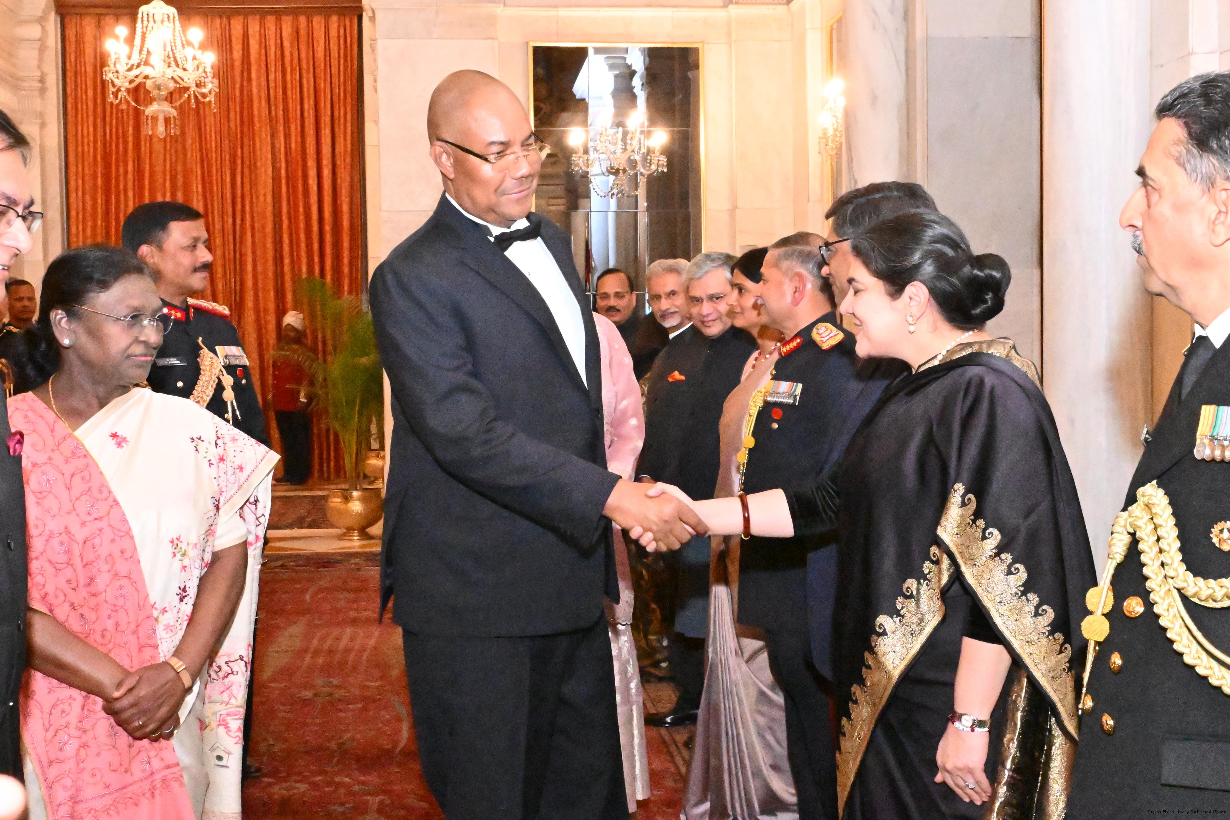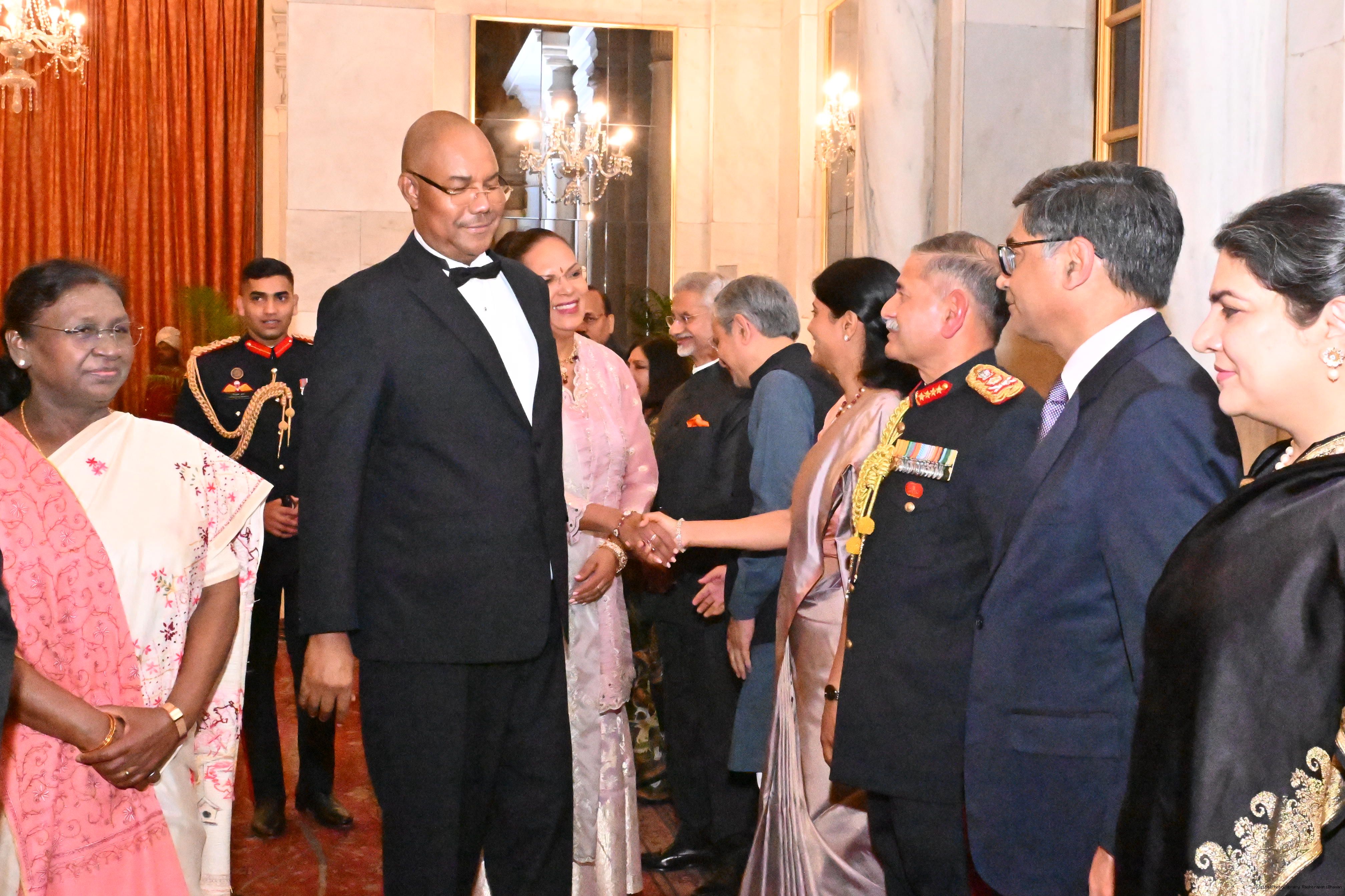 Caption: The President of India, Smt Droupadi Murmu hosted a banquet dinner in his honour the President of the Republic of Seychelles H.E. Dr Patrick Herminie at Rashtrapati Bhavan on February 9, 2026.