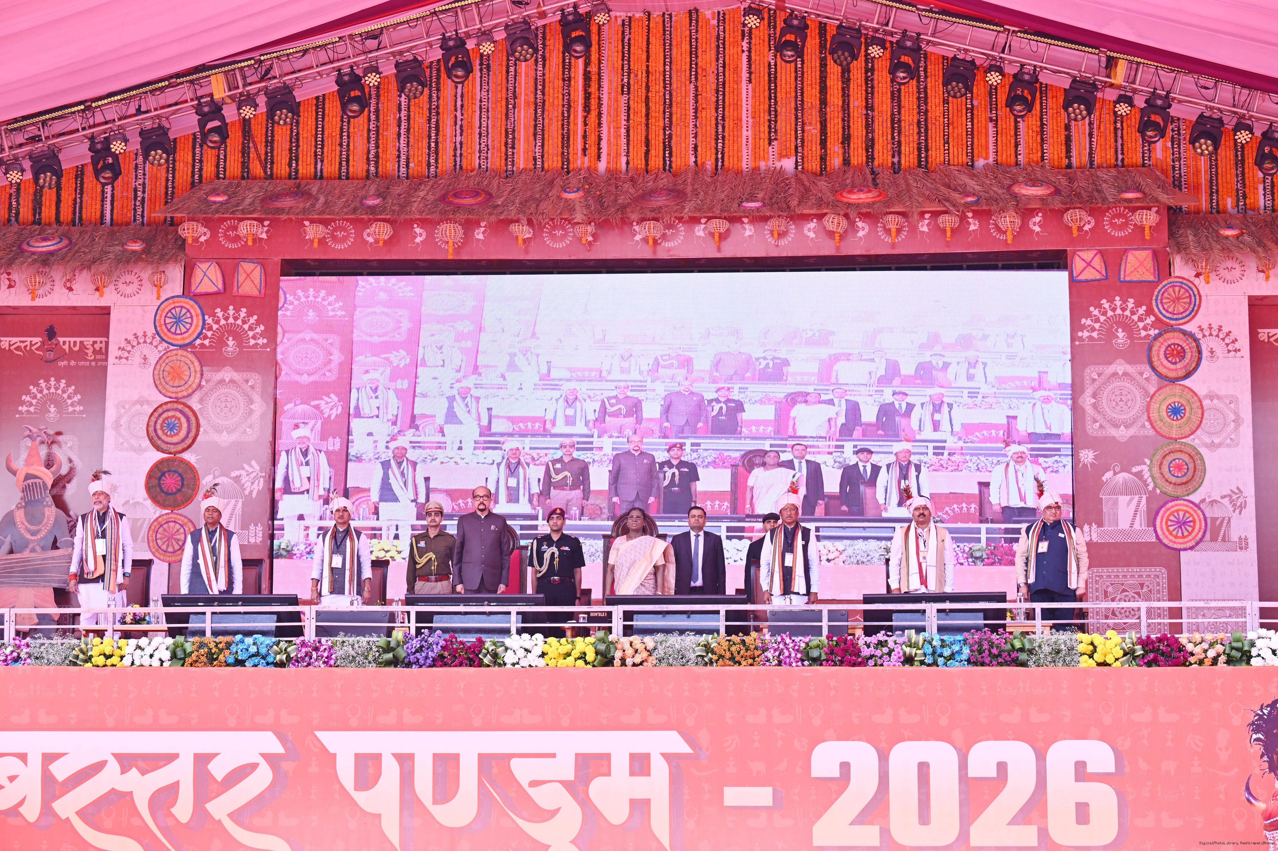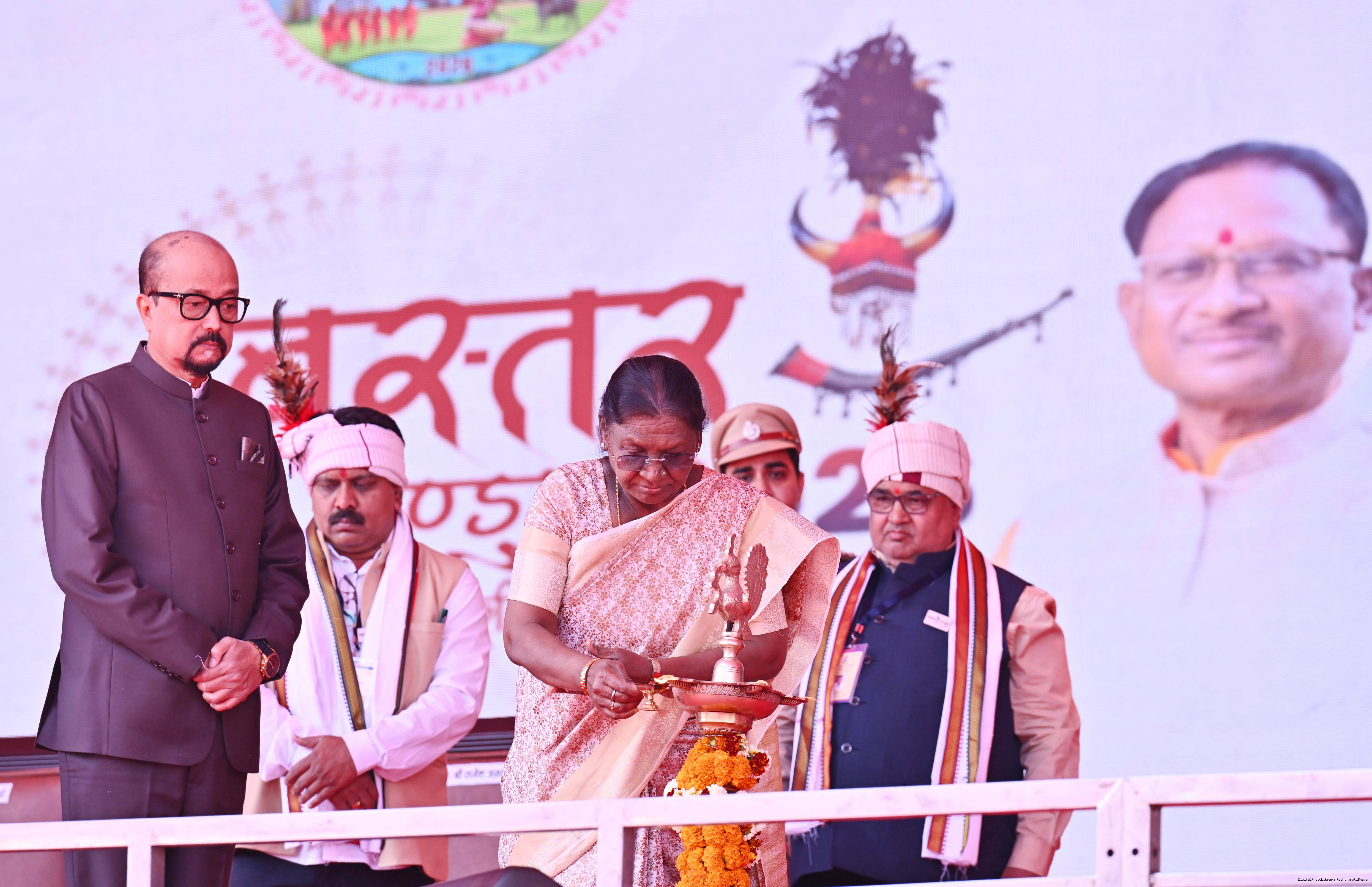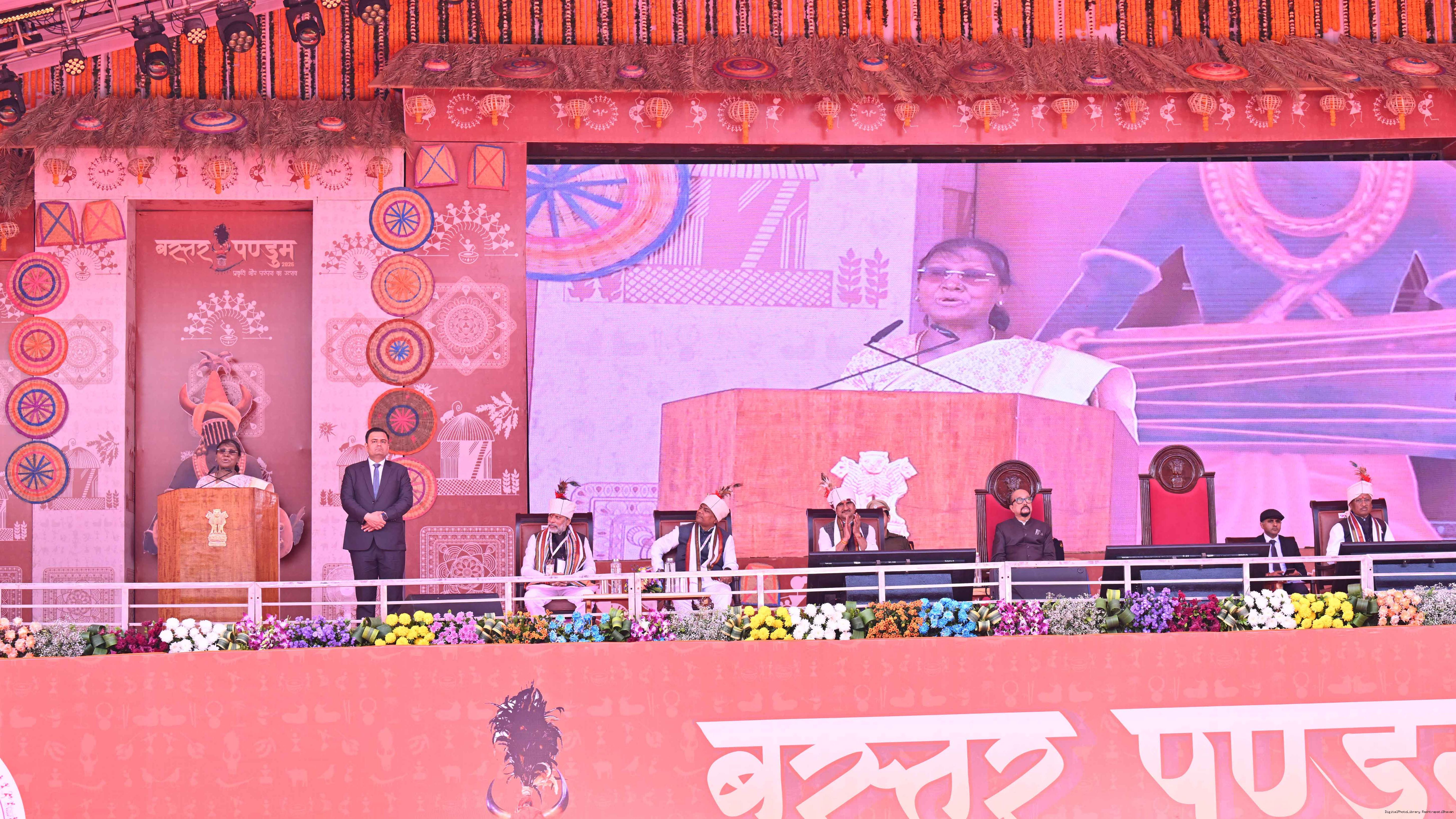 Caption: The President of India Smt Droupadi Murmu inaugurated the Bastar Pandum 2026 at Jagdalpur, Chhattisgarh on February 7, 2026.