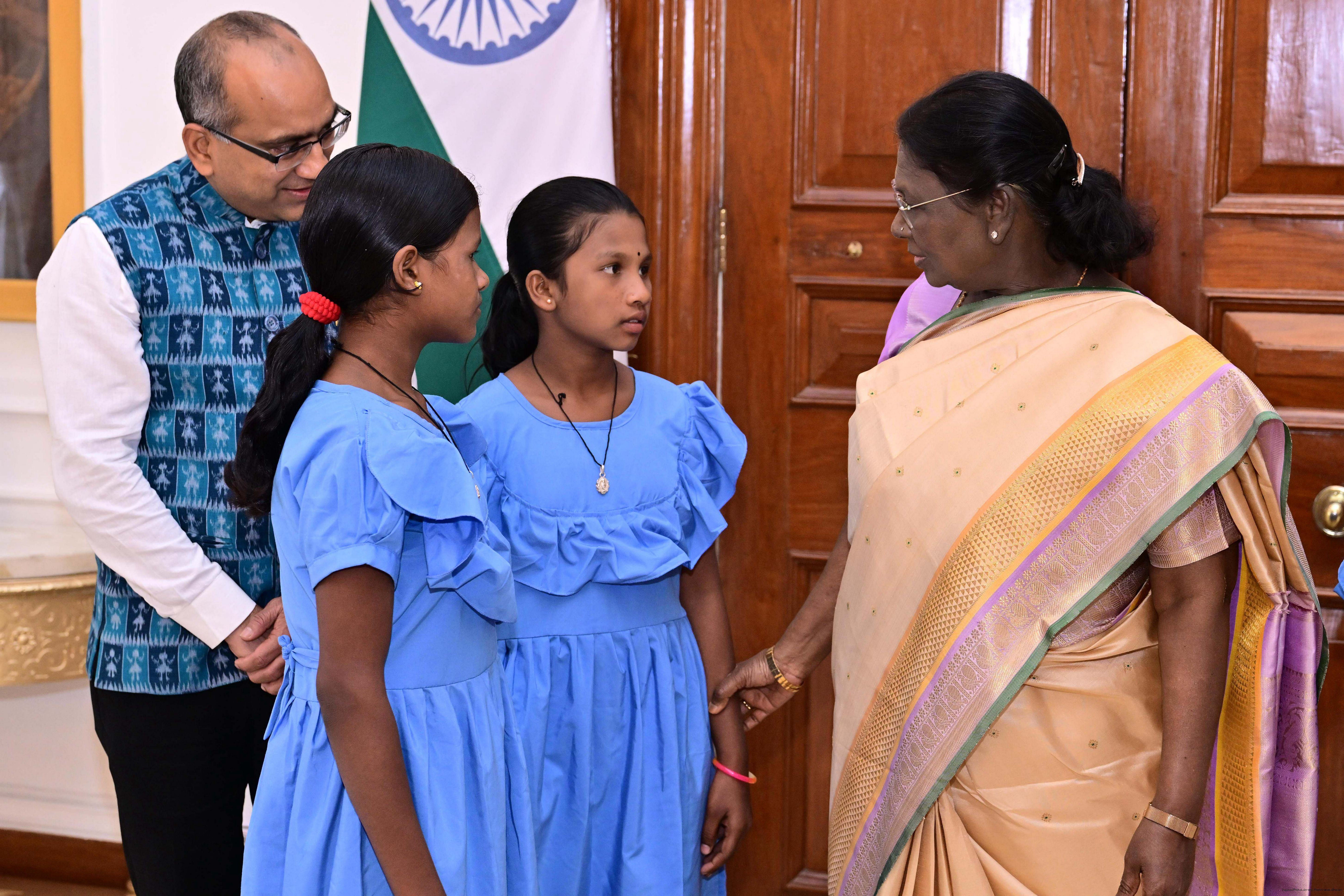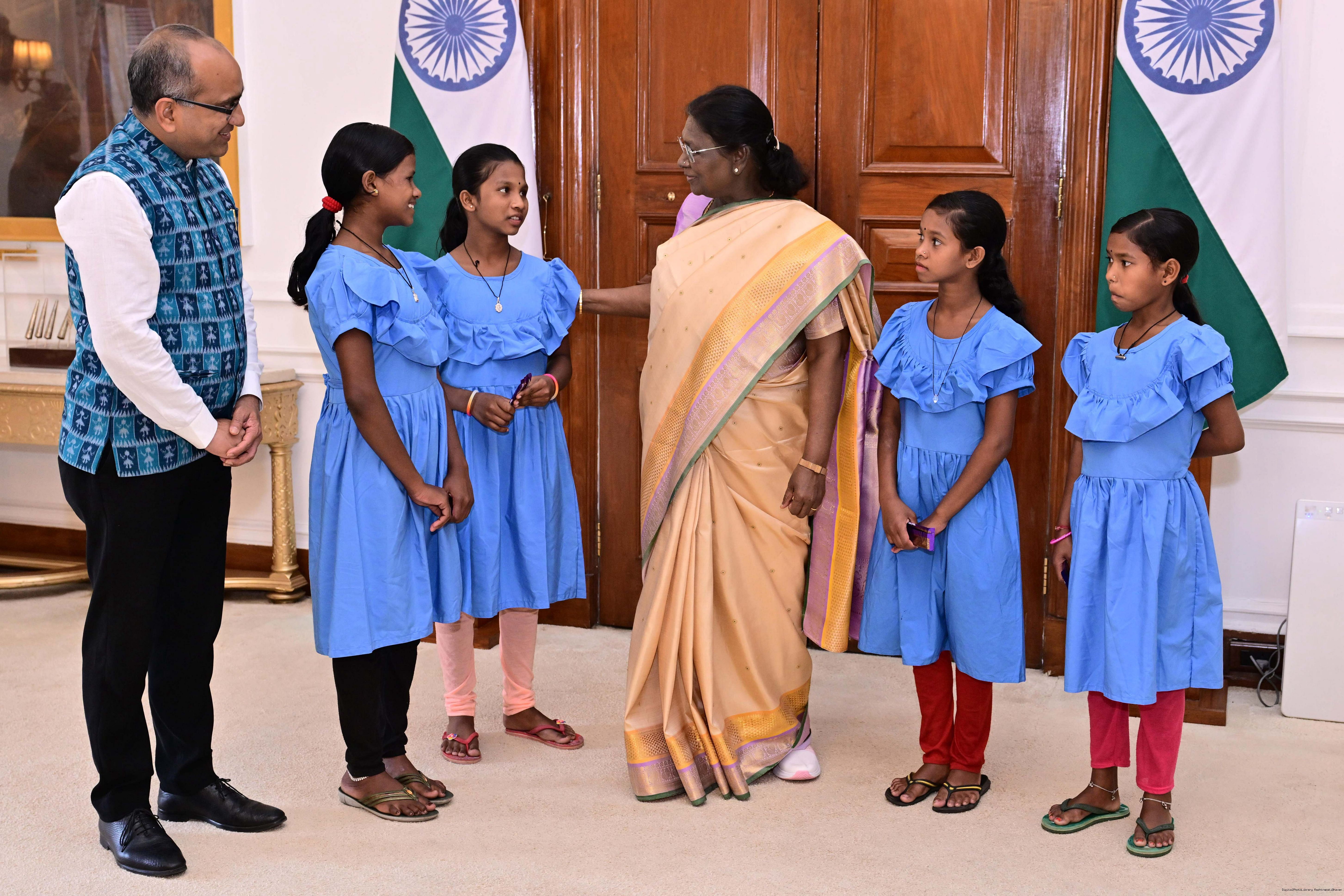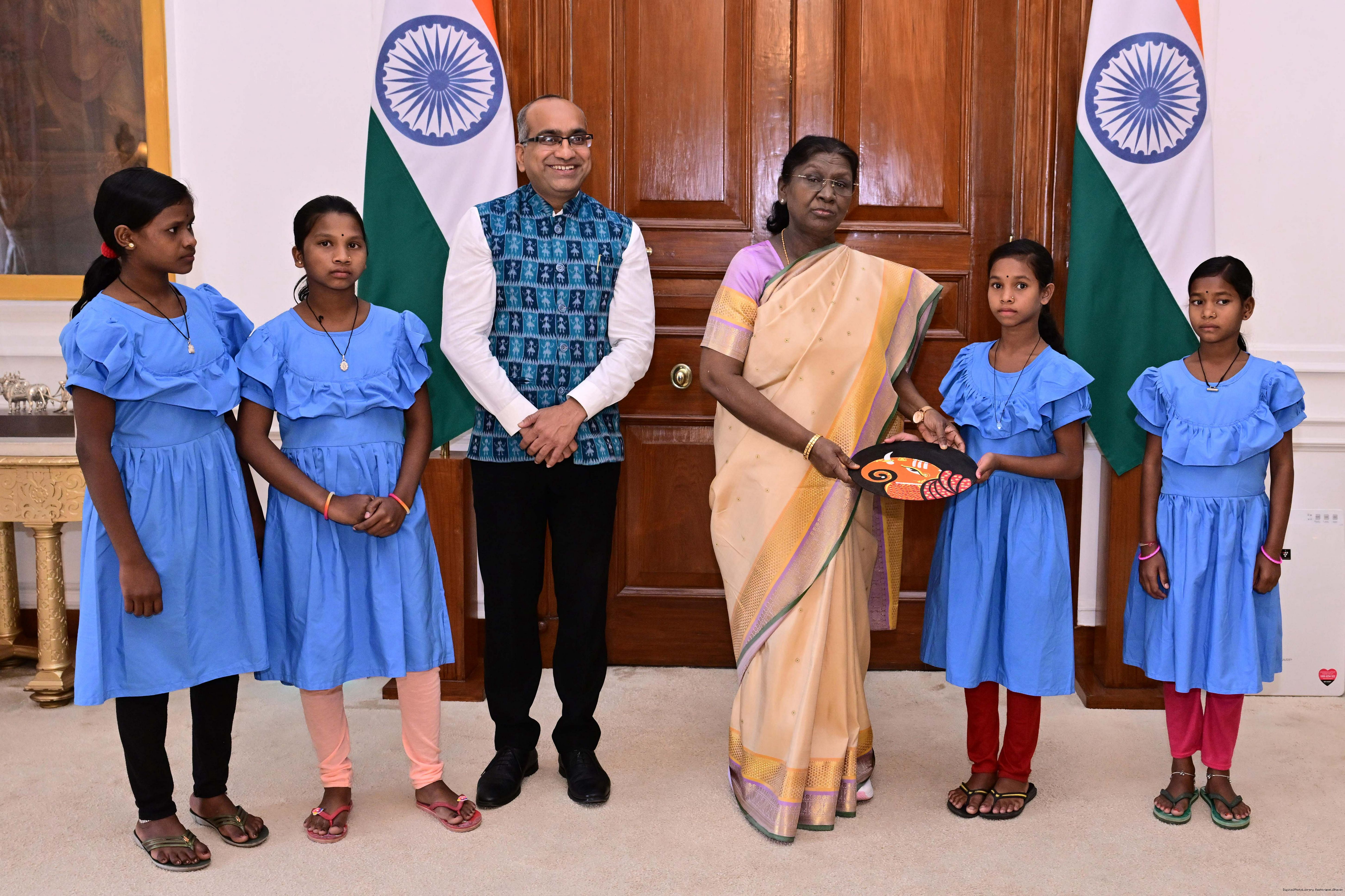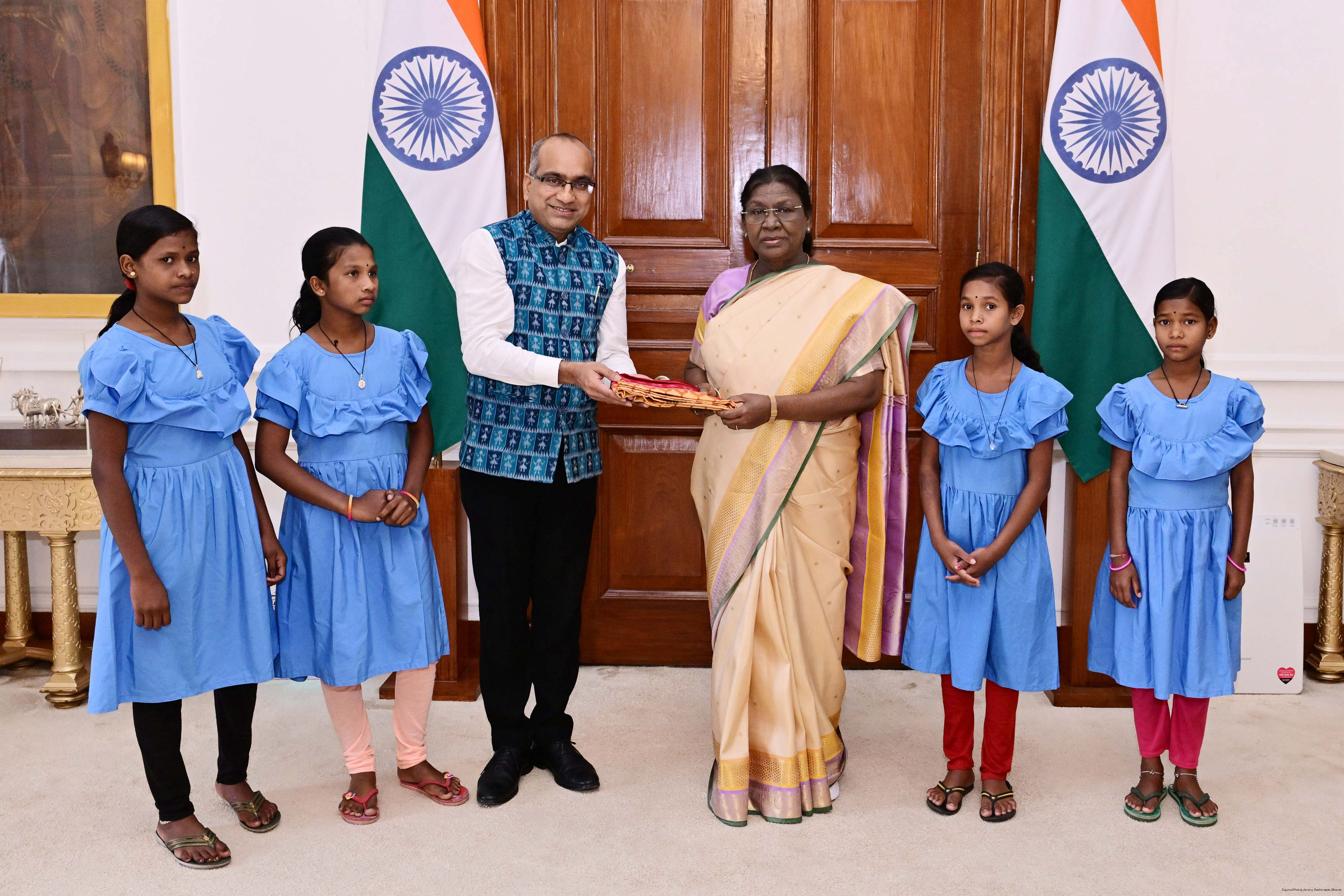 | Caption: | Shri Sujeet Kumar, MP (RS) along with tribal girls from Kalahandi, Odisha meeting with the President of India, Smt Droupadi Murmu at Rashtrapati Bhavan on February 12, 2026. |
