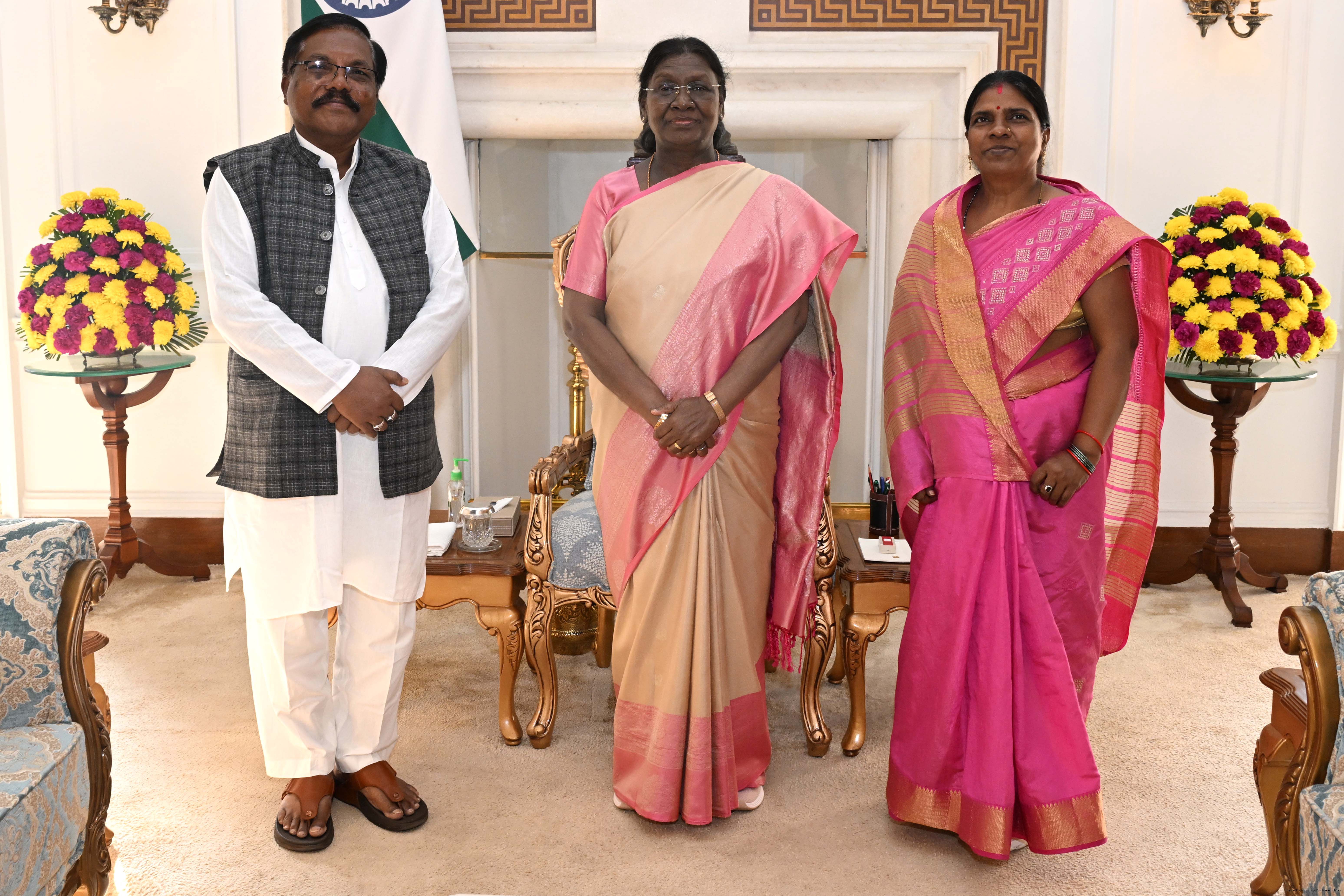 | Caption: | Shri Parsuram Majhi, former MP along with spouse Smt. Kusum Majhi meeting with the President of India, Smt Droupadi Murmu at Rashtrapati Bhavan on February 20, 2026. |