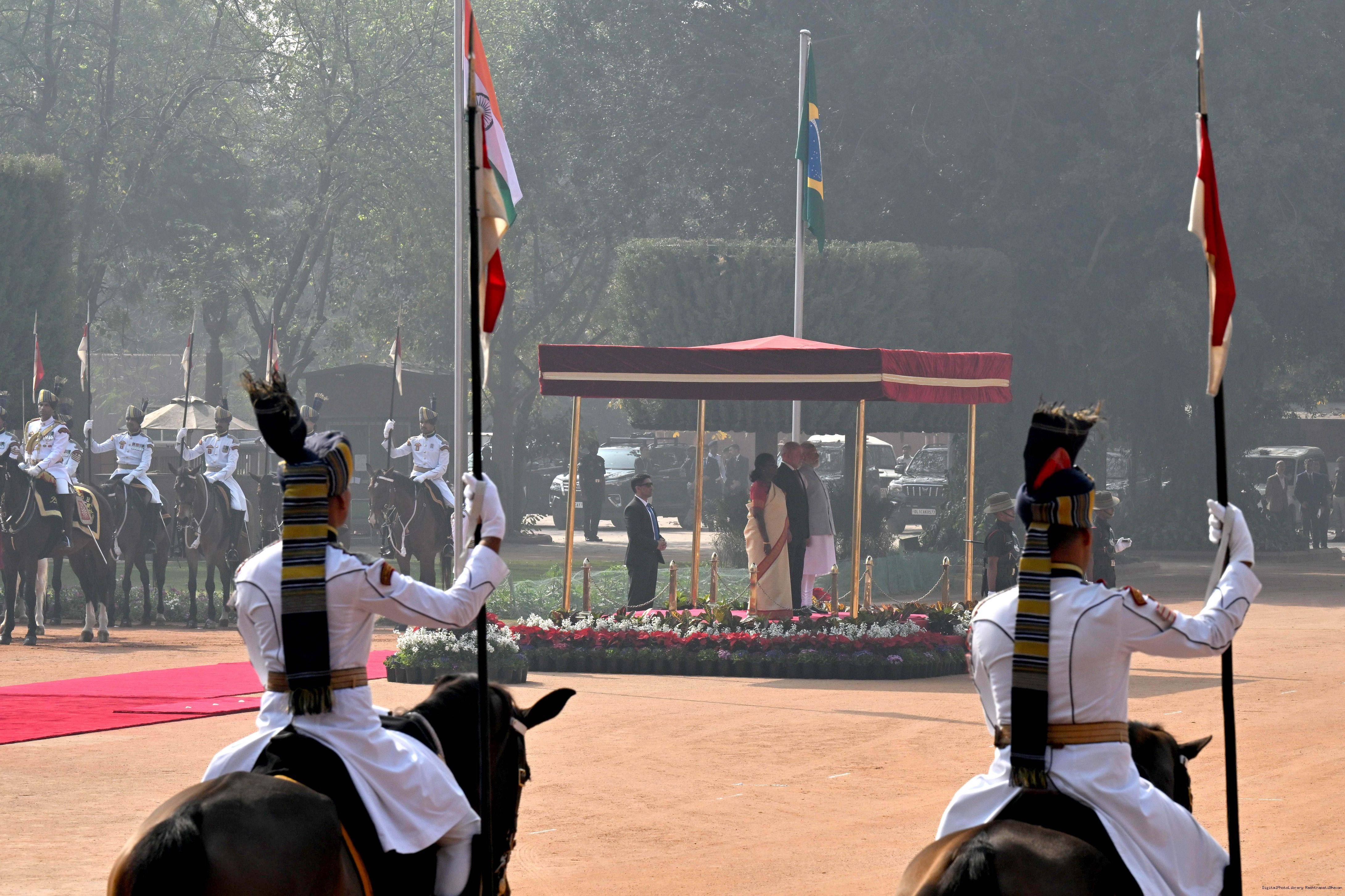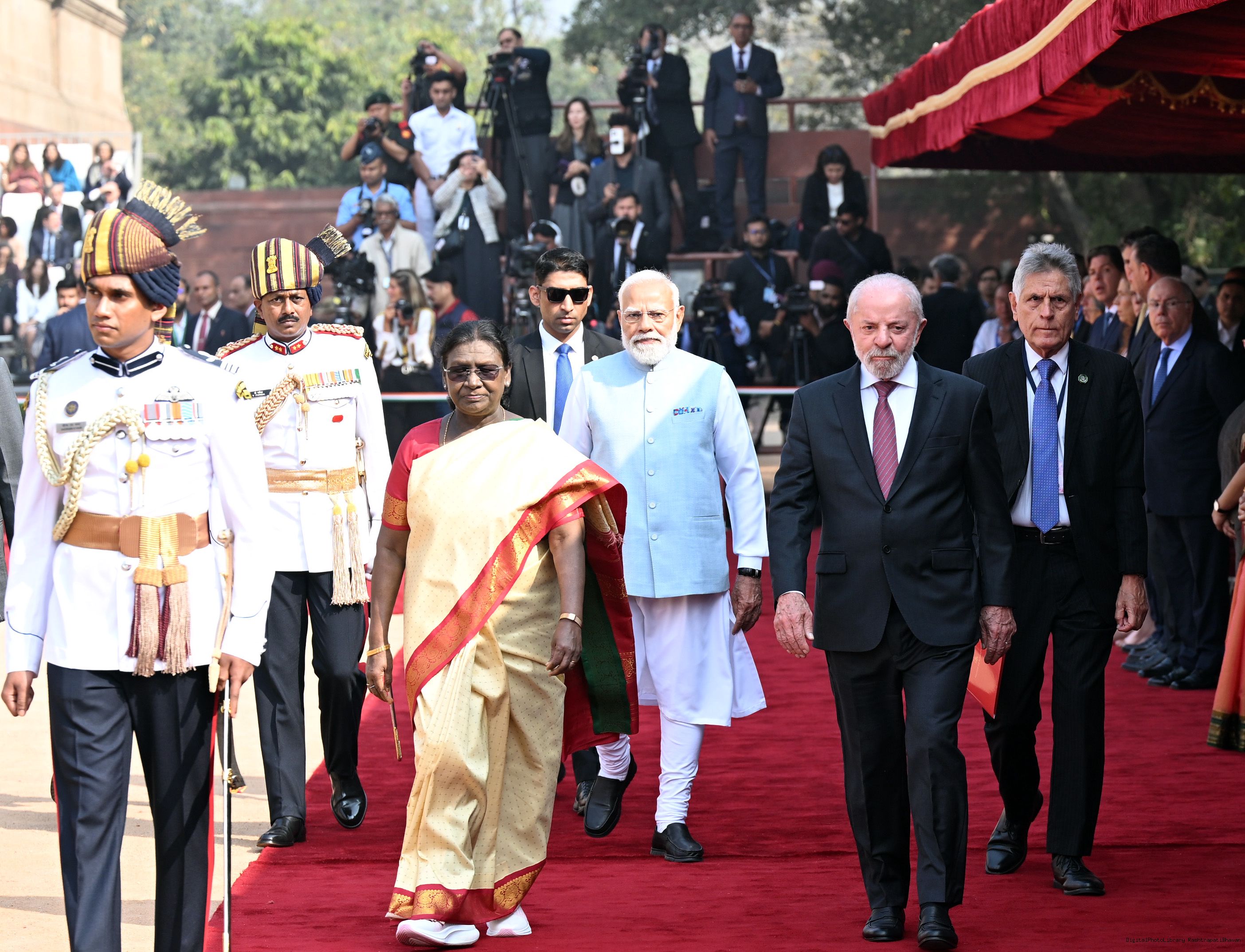 | Caption: | The President of India, Smt Droupadi Murmu accorded a ceremonial welcome to H.E. Mr. Luiz Inácio Lula da Silva, President of the Federative Republic of Brazil, at Rashtrapati Bhavan on February 21, 2026. |