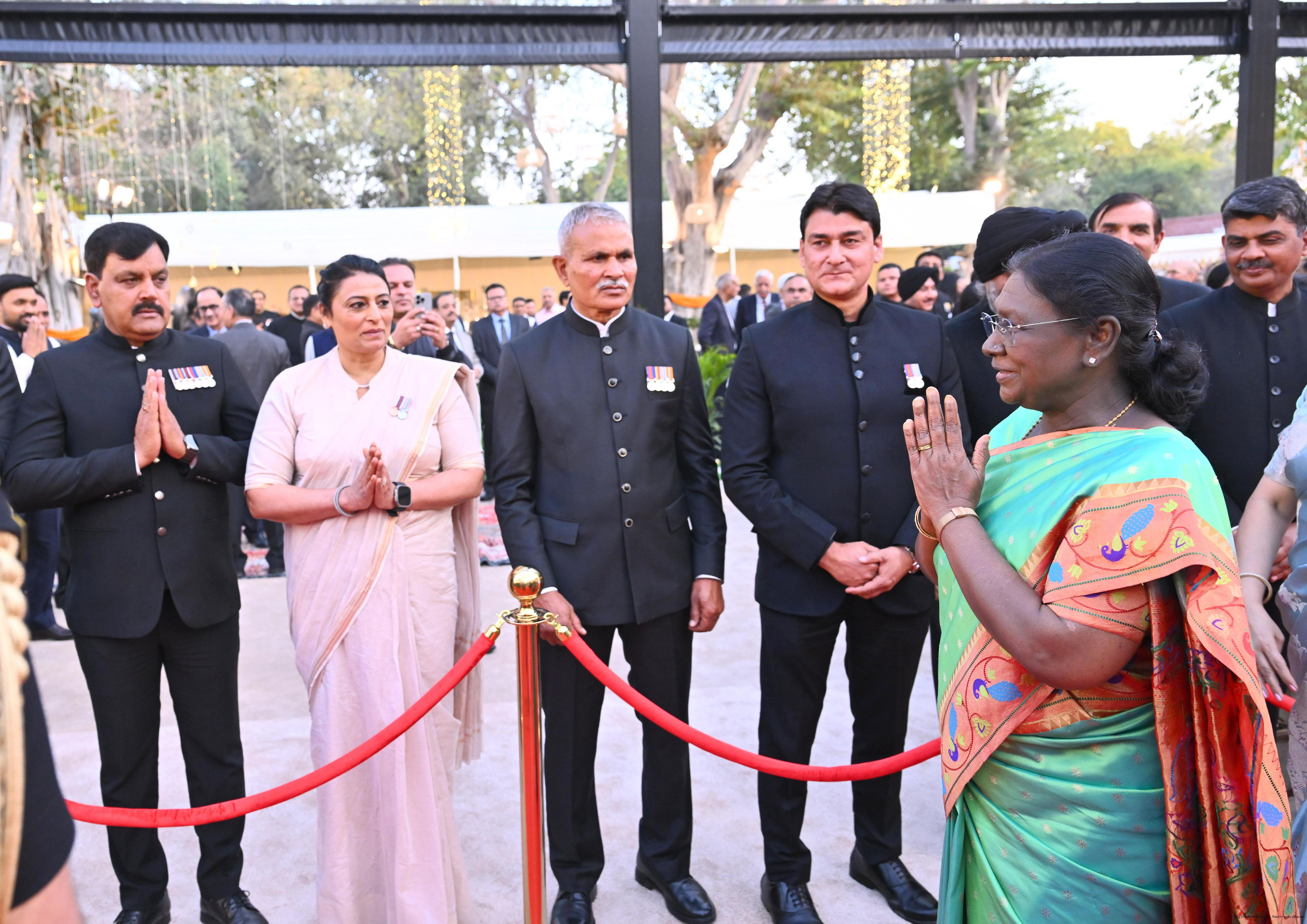 Caption: The President of India, Smt Droupadi Murmu attending 'At Home' on the occasion of Delhi Police Raising Day, in New Delhi on February 23, 2026.